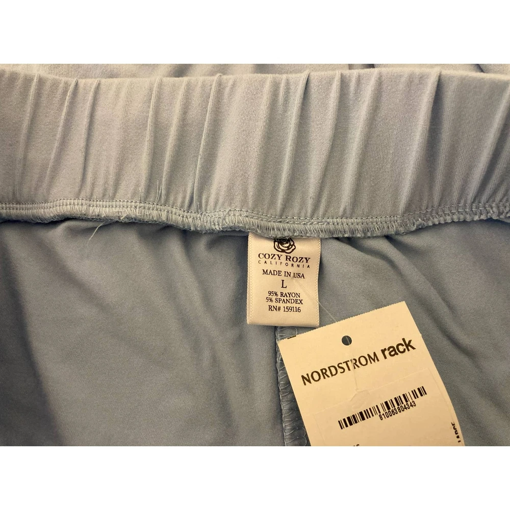 <![CDATA[<div>Cozy Rozy California Pull On Jogger/Lounge Pajama Pants - NEW, NWT, New with tags - Size: Large - Color: Light blue / baby blue (photos show gray tones but item is blue) - Pull on stretch knit jogger lounge pajama pants - Wide covered elastic waistband - No drawstring or pockets - Cuffed leg hems - Silky soft, cozy, comfortable, lightweight - Casual, leisure, sports, active wear, lounge wear, pajama, intimate wear, jogger pants - Packs and travels well - Spring summer fall winter Approx. measurements lying flat: Inseam 28", Front Rise 11" Nordstrom RN 159116 Please note any color differences in photos are due to lighting.