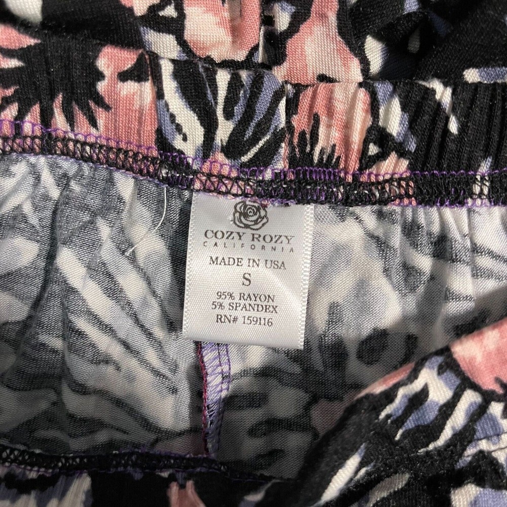 ***Bundle any 3 $10 items in my closet for $12, OR any 4 $10 items in my closet for $14*** Cozy Rozy Floral Print Pajama Pants Black S New without tag. Excellent condition. No visible flaws. Pink floral print Elastic waistband Crop length Lightweight jersey knit Rayon, Spandex Offers welcomed sleepwear, loungewear, casual, everyday, cruise, resort, vacation, holiday, travel