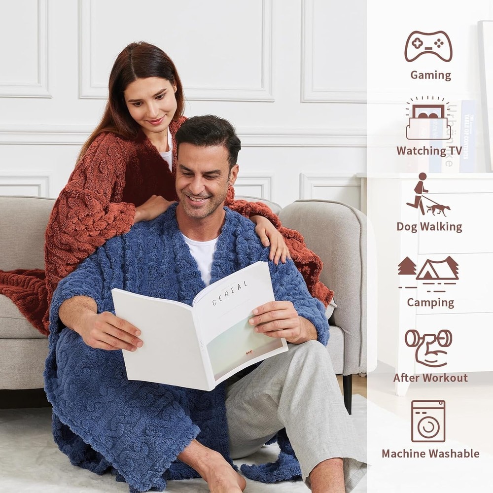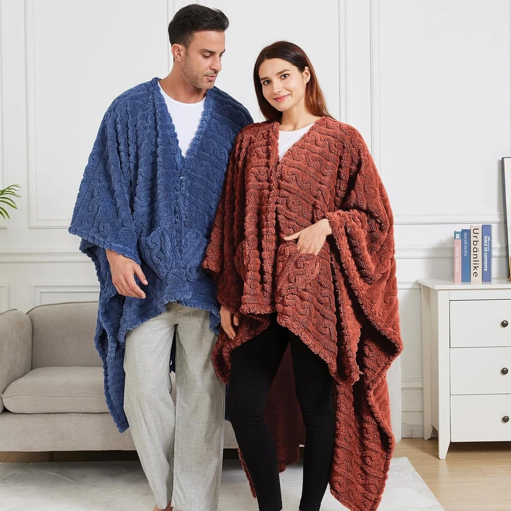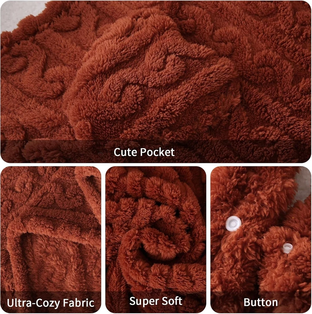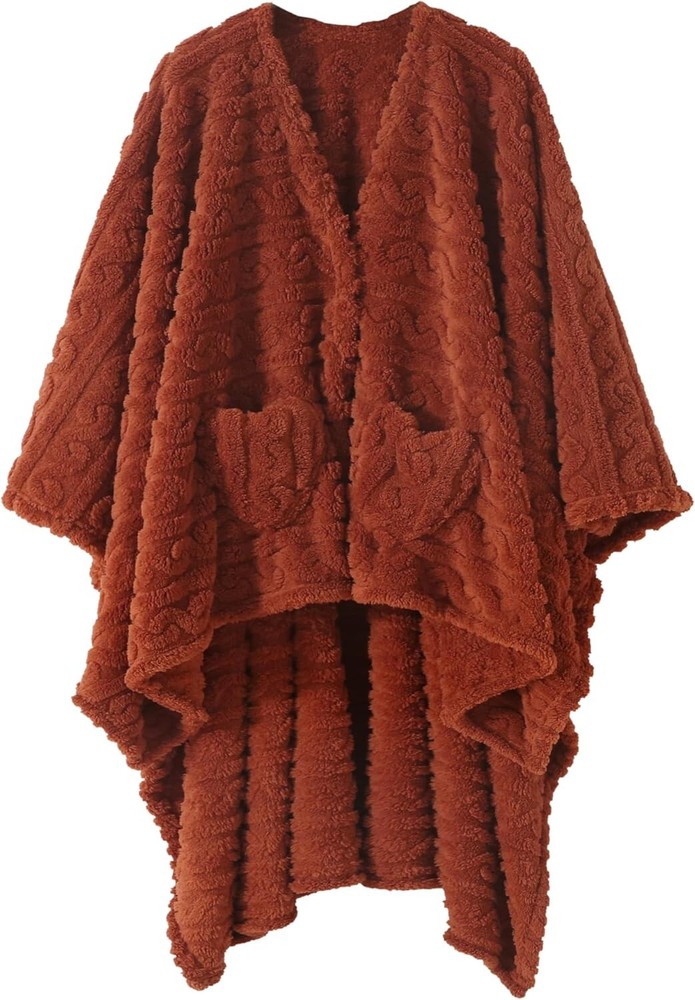 Absolutely love this poncho! The soft sherpa fleece keeps me so warm and cozy—perfect for chilly nights or lazy weekends. The size is generous, and I adore the rust color—it’s stylish yet neutral. Super versatile, I wear it at home, for quick errands, or even wrapped around my shoulders while reading. Easy to wash too, no fuss. Highly recommend for anyone wanting comfort and warmth in one!