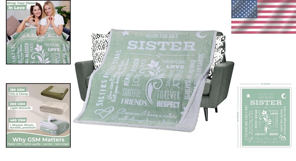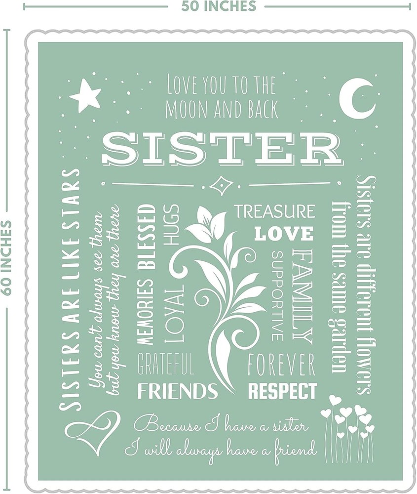 Cozy Sage Green Sherpa Blanket for Sisters - Birthdays & Mother's Day Gift ‹ › ‹ › ‹ › ‹ › ‹ › ‹ › ‹ › ‹ › ‹ › ‹ › ‹ › Cozy Sage Green Sherpa Blanket for Sisters This Blanket is the ultimate gift for birthdays, Mother's Day, or just to show your love on any ordinary day. Crafted from luxurious materials, it offers the warmth and comfort every sister deserves. Features: Extra Thick Comfort: Made with a combined 460gsm of colored, printed fleece and backed by snuggly soft white sherpa, this blanket wraps your sister in a comforting hug of love. Ready to Gift: All blankets come elegantly tied with a coordinating ribbon, making it a stunning gift for any occasion—birthdays, Christmas, Valentine's Day, or just a thoughtful surprise. Heartfelt Sentiments: Each blanket features professionally designed sayings that perfectly capture the special bond between sisters. Easy Care Comfort: Machine washable and dryer friendly, this premium blanket won't shrink, fade, or lose its plushness even after repeated washes. Perfect for Every Sister: Whether it's a twin, older or younger sister, bonus sister, or sister-in-law, this heartfelt gift signifies appreciation that can be felt daily. Benefits: Provides warmth and comfort, perfect for chilly days. Professional design conveys love and appreciation. Practical gift that can be enjoyed every day. Effortless maintenance keeps it looking lovely and inviting. Why Choose Our Sherpa Blanket for Sisters? This Cozy Sage Green Sherpa Blanket is more than just a gift—it's an everlasting embrace filled with love. Whether for a birthday, a festive occasion, or to express your admiration, this blanket is designed to comfort and wrap your sister in warmth. Give the gift of cozy happiness that she can cherish every day. Order your Cozy Sage Green Sherpa Blanket today, and let your sister feel the warmth of your love all wrapped up in a beautiful, soft gesture. Shipping Free & Fast Shipping - We offer free shipping to most of the USA with a normal delivery time of 3-7 days. However, due to the current situation, additional delivery time (up to 3 weeks) may be required for some items. Alternative Carriers - We may use alternative carriers (e.g. USPS, FedEx, UPS, etc.) to ensure your package arrives safely and on time. Due to the use of multiple carriers, we are unable to provide a tracking number automatically. Handling Time - Orders are processed and shipped within 1-2 business days of receiving cleared payment. Shipping Restrictions - Shipping to Alaska, Hawaii, Puerto Rico, Guam, and other US territories may incur shipping charges or delivery restrictions. Please contact us before ordering, or your order can be refunded/cancelled. State Restrictions - There may be restrictions based on your state of purchase. For example, certain items may not be shipped to California due to state regulations. Contact for Tracking Updates - If you require tracking updates or have any concerns about the delivery of your order, please feel free to contact us, and we will be happy to assist you. Return 30-Day Hassle-Free Returns - We want you to be completely satisfied with your purchase. If you are not, you can return the item within 30 days of receiving it for a full refund or exchange. Easy Return Process - To start a return, simply contact us and we will provide you with a prepaid return shipping label and detailed instructions. Restocking Fee - There are no restocking fees for returns. However, the buyer is responsible for return shipping costs if the return is not due to a seller's error. Refund Processing Time - Refunds will be processed within 5 business days of receiving the returned item in its original condition. Payment We accept all major credit cards, PayPal, and Apple Pay for your convenience. Your payment information is secure and encrypted to ensure a safe and seamless transaction. Please complete your payment within 3 days of purchase to avoid any delays in shipping. Feedback Your feedback is extremely important to us. We strive to provide the best products and customer service possible. If you are satisfied with your purchase, please take a moment to leave us a positive review. If you have any concerns or issues with your order, please contact us before leaving negative feedback. We are committed to resolving any problems and ensuring your satisfaction. Contact Us If you have any questions or concerns, please feel free to reach out to our customer support team. You can contact us through the eBay messaging system. We are available Monday to Friday, 9:00 am to 5:00 pm EST, and we will do our best to respond to your inquiry within 24 hours. Buy it now and enjoy a pleasant shopping experience! UPC: Not Set MPN: Not Set Size: 60x50 inches Model: Not Set Unit Quantity: 1.0 count Features: Easy Care,Extra Thick,Soft and Cozy,Wrapped in Ribbon,Printed Fleece,Sherpa Backing,Machine Washable,Durable,Sentimental Gift,Perfect for Gift Giving Brand: Unbranded Type: Throw Blanket Color: Sage Green Theme: Love Character Family: Not Set Material: Sherpa Gender: Unisex To Fit: Crib Country/Region of Manufacture: Not Set Unit Type: lb Personalize: Not Set Personalized: Not Set