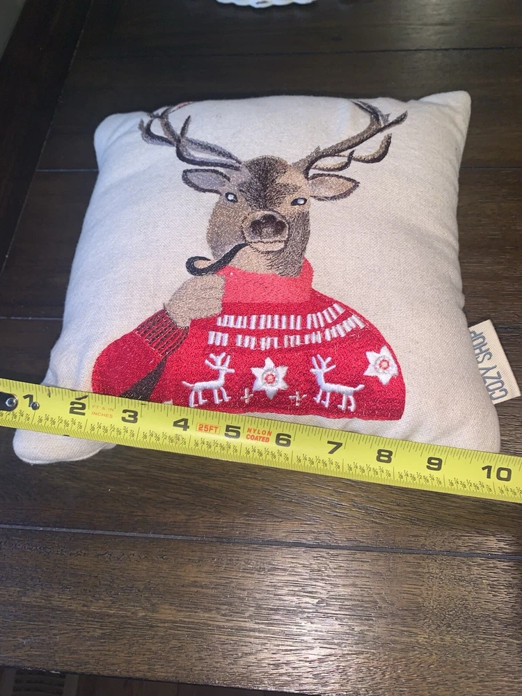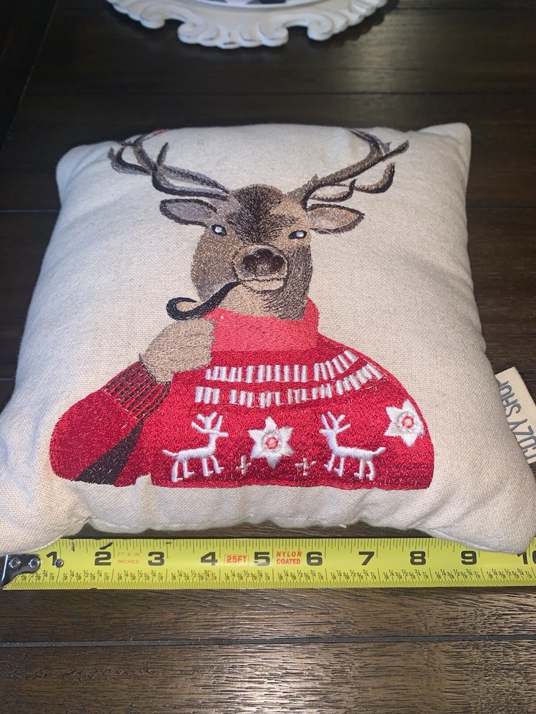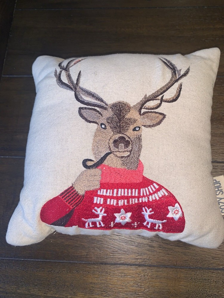 Cozy Shop Christmas Pillow Reindeer with Pipe Holiday 10 x 10 Linen