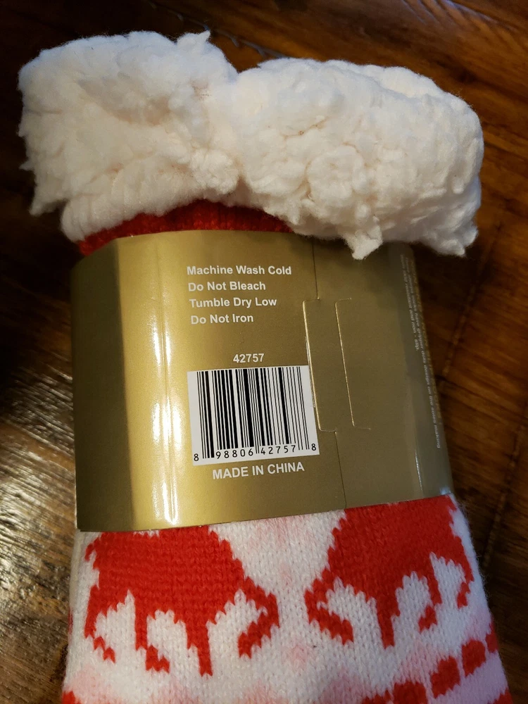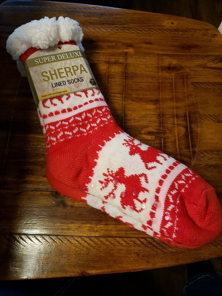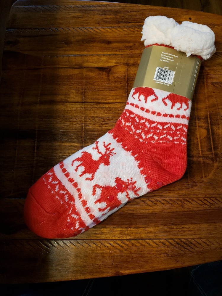 Cozy Shop Sherpa Lined Knit Socks Rubber Grips Red & White with Reindeers Super Soft Stocking Stuffer. Condition is New with tags. Shipped with USPS First Class Package.