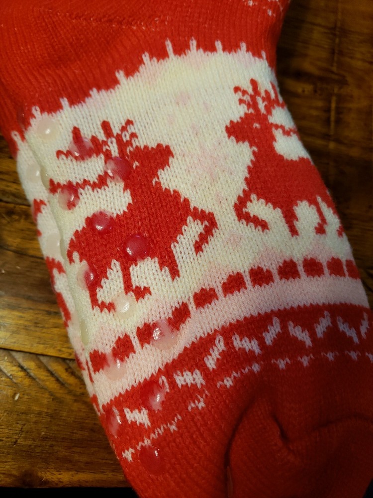Cozy Shop Sherpa Lined Knit Socks Rubber Grips Red & White with Reindeers Super Soft Stocking Stuffer. Condition is New with tags. Shipped with USPS First Class Package....