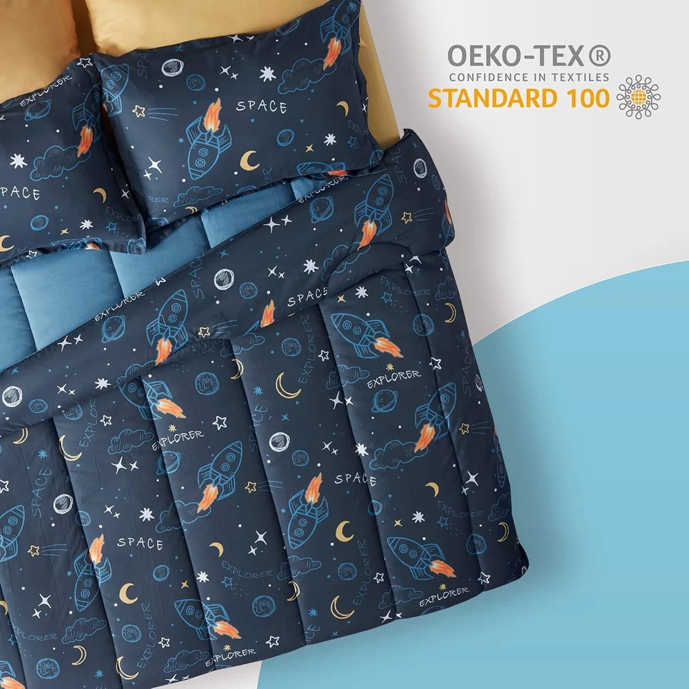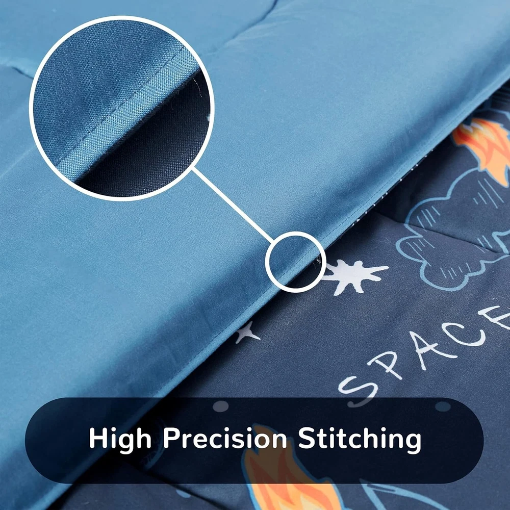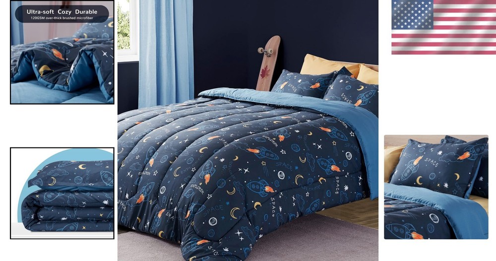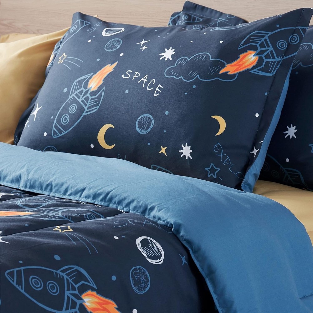 Cozy Space Rocket Comforter Set for Kids - Fade Resistant, Full/Queen, 3-Piece ‹ › ‹ › ‹ › ‹ › ‹ › ‹ › ‹ › ‹ › Cozy Space Rocket Comforter Set for Kids - Fade Resistant - Available in Full/Queen Size - 3-Piece Set Features: Cute design featuring a peaceful dark blue background with stars, moons, planets, clouds, meteors, and rockets—sparking your child's imagination each night. Interspersed yellow elements create a warm, bright atmosphere to inspire hope and wonder. Crafted from thick brushed microfiber, providing a super soft and comfortable surface. Overfilled with 200gsm microfiber and INVISTA cooling fiber for breathability and cloud-like fluffiness. Noise-free and free from horrible odors, ensuring a serene sleeping environment for your little ones. Durable classic quilted design with elegant piped edges to prevent edge breakage and maintain quality after repeated washes. Kid-friendly dyeing and printing process ensures excellent colorfastness, no fading or blurring, even after numerous washes. Machine washable—cold wash; tumble dry low, without bleach. Size Guide: 2 Pieces Twin Set: Includes 1 comforter (66x90 inch) and 1 pillowcase (20x30 inch). 3 Pieces Full/Queen Set: Includes 1 comforter (90x90 inch) and 2 pillowcases (20x30 inch). Satisfaction Promise: With over 40 of experience in high-quality bedding design and manufacture, our products are Oeko-Tex Standard 100 certified, ensuring they are free of harmful chemicals. Enjoy peace of mind with excellent product quality and customer service. Should you have any inquiries or issues, feel free to out—we will respond within 24 hours. Why Choose the Cozy Space Rocket Comforter Set? 🌌 Transform your child's sleeping space into a wonderful universe of exploration with our Cozy Space Rocket Comforter Set! Tailored for comfort and creativity, this delightful bedding not only encourages dreamy adventures but also guarantees durability and easy care. Perfect for peace-loving parents seeking an enchanting yet cozy sleep experience for their children. Don't miss the chance to elevate your little one's bedtime! Shipping Free & Fast Shipping - We offer free shipping to most of the USA with a normal delivery time of 3-7 days. However, due to the current situation, additional delivery time (up to 3 weeks) may be required for some items. Alternative Carriers - We may use alternative carriers (e.g. USPS, FedEx, UPS, etc.) to ensure your package arrives safely and on time. Due to the use of multiple carriers, we are unable to provide a tracking number automatically. Handling Time - Orders are processed and shipped within 1-2 business days of receiving cleared payment. Shipping Restrictions - Shipping to Alaska, Hawaii, Puerto Rico, Guam, and other US territories may incur shipping charges or delivery restrictions. Please contact us before ordering, or your order can be refunded/cancelled. State Restrictions - There may be restrictions based on your state of purchase. For example, certain items may not be shipped to California due to state regulations. Contact for Tracking Updates - If you require tracking updates or have any concerns about the delivery of your order, please feel free to contact us, and we will be happy to assist you. Return 30-Day Hassle-Free Returns - We want you to be completely satisfied with your purchase. If you are not, you can return the item within 30 days of receiving it for a full refund or exchange. Easy Return Process - To start a return, simply contact us and we will provide you with a prepaid return shipping label and detailed instructions. Restocking Fee - There are no restocking fees for returns. However, the buyer is responsible for return shipping costs if the return is not due to a seller's error. Refund Processing Time - Refunds will be processed within 5 business days of receiving the returned item in its condition. Payment We accept all major credit cards, PayPal, and Apple Pay for your convenience. Your payment information is secure and encrypted to ensure a safe and seamless transaction. Please complete your payment within 3 days of purchase to avoid any delays in shipping. Feedback Your feedback is extremely important to us. We strive to provide the best products and customer service possible. If you are satisfied with your purchase, please take a moment to leave us a positive review. If you have any concerns or issues with your order, please contact us before leaving negative feedback. We are committed to resolving any problems and ensuring your satisfaction. Contact Us If you have any questions or concerns, please feel free to out to our customer support team. You can contact us through the eBay messaging system. We are available Monday to Friday, 9:00 am to 5:00 pm EST, and we will do our best to respond to your inquiry within 24 hours. Buy it now and enjoy a pleasant shopping experience! Model: Kids Bedding Comforter Set Set Includes: Comforter,Pillowcase Material: Microfiber Features: Breathable,Machine Wash,Durable,Fade Resistant,Quiet,Ultra Soft Character: Rocketeer Theme: Space Care Instructions: Do Not Bleach,Machine Wash Department: Kids Room: Bedroom Size: Queen Type: Comforter Set Color: Blue Fill Material: Microfiber Pattern: Printed Insulation: All Seasons Number of Items in Set: 3 Style: Contemporary Season: All Closure Type: No Closure Thread Count: 1800 GSM (Grams per Square Meter): Over 800