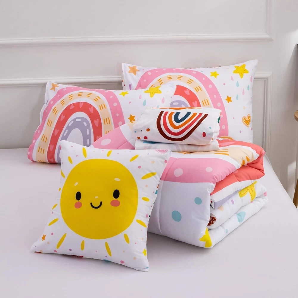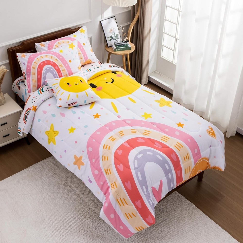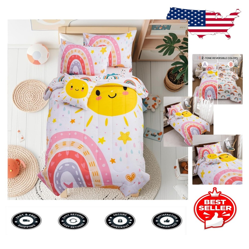 Cozy Twin Rainbow Comforter Set - 5-Piece Kids Bedding in Pink & Cartoon Design < class="slides"> ‹ › ‹ › ‹ › ‹ › ‹ › ‹ › ‹ › ‹ › ‹ › ‹ › ‹ › Cozy Twin Rainbow Comforter Set - 5-Piece Kids Bedding Color: Pink & Cartoon Design Product Details: Microfiber Material: Crafted from high-quality microfiber, this bedding set is designed for ultimate softness and comfort. The fabric is breathable and easy to clean, ensuring a cozy experience in your child’s bedroom. Complete Package: This exquisite set includes: 1 x Twin Size Comforter (69" x 90") 2 x Pillowcases (20" x 27") 1 x Flat Sheet (66" x 96") 1 x Fitted Sheet (75" x 39" + 14") 1 x Cushion Cover (18" x 18")) Unique 3D Design: Featuring the latest in 3D printing technology, this bedding set showcases a delightful rainbow pattern, perfectly tailored to brighten and sweeten any girl’s bedroom decor. Comfort Like No Other: Experience restful sleep while snuggled in this cozy bedding set. The soft and breathable fabrics ensure comfort all round, making it an ideal gift for Christmas, Halloween, New , birthdays, and other special occasions. Easy Care: Enjoy hassle-free maintenance; the comforter is machine washable in cold water on a gentle cycle. Tumble dry at low temperature, and cool iron if needed. Please avoid bleach and soaking for best results. Why Choose the Cozy Twin Rainbow Comforter Set? Transform your child's bedroom into a whimsical sanctuary with our Cozy Twin Rainbow Comforter Set. Not only does it enhance the aesthetic appeal, but it also promotes relaxation with its plush comfort. With easy care and a striking design, this bedding set will quickly become a favorite. Give your child the gift of cozy nights and sweet dreams. Elevate your bedding experience today with this enchanting 5-piece set! Shipping Free & Fast Shipping - We offer free shipping to most of the USA with a normal delivery time of 3-7 days. However, due to the current situation, additional delivery time (up to 3 weeks) may be required for some items. Alternative Carriers - We may use alternative carriers (e.g. USPS, FedEx, UPS, etc.) to ensure your package arrives safely and on time. Due to the use of multiple carriers, we are unable to provide a tracking number automatically. Handling Time - Orders are processed and shipped within 1-2 business days of receiving cleared payment. Shipping Restrictions - Shipping to Alaska, Hawaii, Puerto Rico, Guam, and other US territories may incur shipping charges or delivery restrictions. Please contact us before ordering, or your order can be refunded/cancelled. State Restrictions - There may be restrictions based on your state of purchase. For example, certain items may not be shipped to California due to state regulations. Contact for Tracking Updates - If you require tracking updates or have any concerns about the delivery of your order, please feel free to contact us, and we will be happy to assist you. Return 30-Day Hassle-Free Returns - We want you to be completely satisfied with your purchase. If you are not, you can return the item within 30 days of receiving it for a full refund or exchange. Easy Return Process - To start a return, simply contact us and we will provide you with a prepaid return shipping label and detailed instructions. Restocking Fee - There are no restocking fees for returns. However, the buyer is responsible for return shipping costs if the return is not due to a seller's error. Refund Processing Time - Refunds will be processed within 5 business days of receiving the returned item in its condition. Payment We accept all major credit cards, PayPal, and Apple Pay for your convenience. Your payment information is secure and encrypted to ensure a safe and seamless transaction. Please complete your payment within 3 days of purchase to avoid any delays in shipping. Feedback Your feedback is extremely important to us. We strive to provide the best products and customer service possible. If you are satisfied with your purchase, please take a moment to leave us a positive review. If you have any concerns or issues with your order, please contact us before leaving negative feedback. We are committed to resolving any problems and ensuring your satisfaction. Contact Us If you have any questions or concerns, please feel free to out to our customer support team. You can contact us through the eBay messaging system. We are available Monday to Friday, 9:00 am to 5:00 pm EST, and we will do our best to respond to your inquiry within 24 hours. Buy it now and enjoy a pleasant shopping experience! Model: Twin Comforter Set for Kids Set Includes: Comforter,Fitted Sheet,Flat Sheet,Pillowcase,Cushion Cover Material: Microfiber,Polyester Features: Breathable,Lightweight Theme: Rainbow Care Instructions: Do Not Bleach,Machine Wash,Machine Wash Cold,Tumble Dry on Low Heat Department: Kids Room: Bedroom Size: Twin Type: Comforter Set Color: Pink Fill Material: Polyester Pattern: Rainbow Insulation: All Seasons Number of Items in Set: 5 Style: Cartoon Season: All Closure Type: No Closure Thread Count: 200 or Less GSM (Grams per Square Meter): Below 150