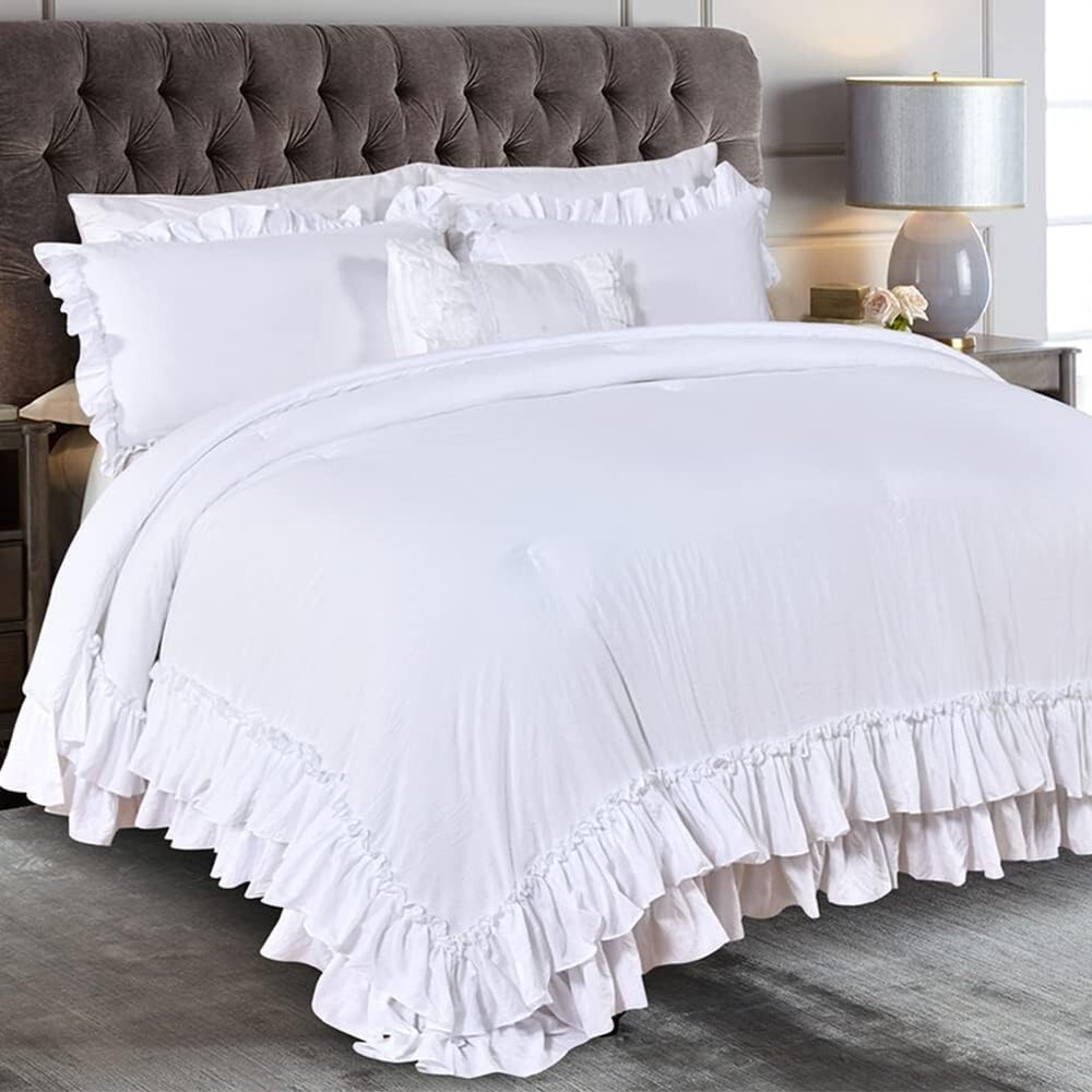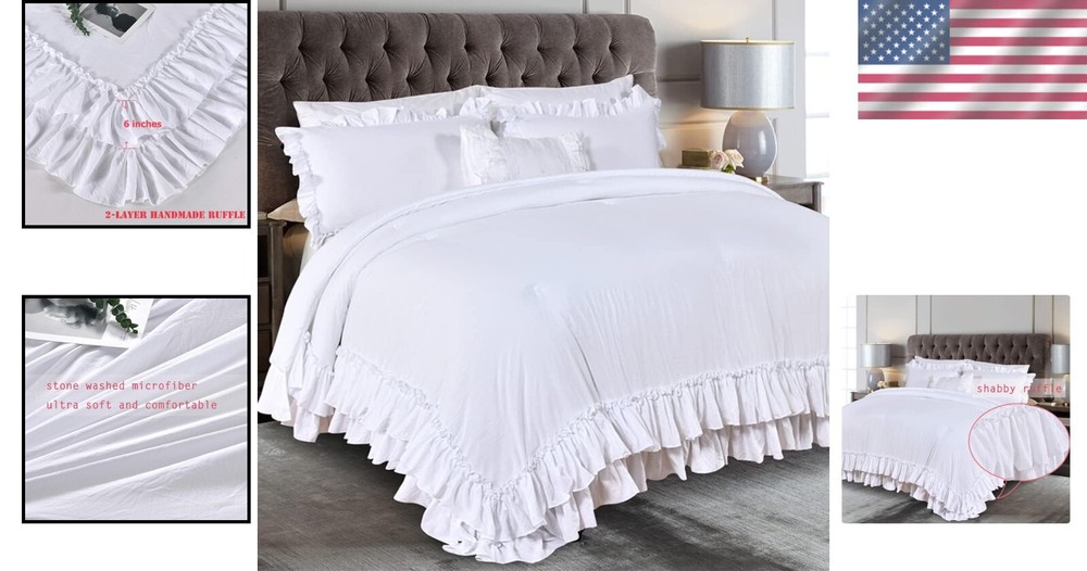 Cozy Ultra Soft Ruffled King Comforter Set with 2 Shams - All Season Comfort ‹ › ‹ › ‹ › ‹ › ‹ › ‹ › ‹ › Cozy Ultra Soft Ruffled King Comforter Set with 2 Shams All Season Comfort Features: Made from stone washed microfiber, offering an ultra-soft touch that is comfy and fluffy for all seasons. Elegant farmhouse ruffle style with 2-layer ruffle hems in bright white color for a vintage chic look. Expert craftsmanship with exquisite stitching ensures durability—no shifting, clumping, or worry of leakage or ripping. Complete set includes: 1 farmhouse shabby comforter (104" x 90" + 6" two-layer ruffles) and 2 matching shams (20" x 36" + 2" ruffles). Easy to care for; machine washable in cold water on a gentle cycle, tumble dry on low, or air dry naturally. We recommend washing before first use! Benefits: Transform your bedroom into a charming retreat with a cozy and inviting atmosphere. The ruffles add a touch of feminine flair that enhances any farmhouse or boho décor. Enjoy a restful night’s sleep wrapped in soft warmth, perfect for all seasons. Ideal as a thoughtful gift for loved ones, enhancing their sleeping experience. Durable and easy to maintain, allowing for years of luxurious comfort and style. Why Choose Our Cozy Ultra Soft King Comforter Set? Are you ready to elevate your bedroom with a touch of elegance and comfort? Our Cozy Ultra Soft Ruffled King Comforter Set is designed not just for looks but for unforgettable warmth and relaxation. The stone washed microfiber will cradle you in blissful softness, while the charming ruffle design speaks to your sophisticated taste. Drift into dreamland with the confidence that this pristine bedding will remain beautiful and functional over time. Your sanctuary awaits—indulge in the luxurious experience of our Cozy King Comforter Set today! Shipping Free & Fast Shipping - We offer free shipping to most of the USA with a normal delivery time of 3-7 days. However, due to the current situation, additional delivery time (up to 3 weeks) may be required for some items. Alternative Carriers - We may use alternative carriers (e.g. USPS, FedEx, UPS, etc.) to ensure your package arrives safely and on time. Due to the use of multiple carriers, we are unable to provide a tracking number automatically. Handling Time - Orders are processed and shipped within 1-2 business days of receiving cleared payment. Shipping Restrictions - Shipping to Alaska, Hawaii, Puerto Rico, Guam, and other US territories may incur shipping charges or delivery restrictions. Please contact us before ordering, or your order can be refunded/cancelled. State Restrictions - There may be restrictions based on your state of purchase. For example, certain items may not be shipped to California due to state regulations. Contact for Tracking Updates - If you require tracking updates or have any concerns about the delivery of your order, please feel free to contact us, and we will be happy to assist you. Return 30-Day Hassle-Free Returns - We want you to be completely satisfied with your purchase. If you are not, you can return the item within 30 days of receiving it for a full refund or exchange. Easy Return Process - To start a return, simply contact us and we will provide you with a prepaid return shipping label and detailed instructions. Restocking Fee - There are no restocking fees for returns. However, the buyer is responsible for return shipping costs if the return is not due to a seller's error. Refund Processing Time - Refunds will be processed within 5 business days of receiving the returned item in its original condition. Payment We accept all major credit cards, PayPal, and Apple Pay for your convenience. Your payment information is secure and encrypted to ensure a safe and seamless transaction. Please complete your payment within 3 days of purchase to avoid any delays in shipping. Feedback Your feedback is extremely important to us. We strive to provide the best products and customer service possible. If you are satisfied with your purchase, please take a moment to leave us a positive review. If you have any concerns or issues with your order, please contact us before leaving negative feedback. We are committed to resolving any problems and ensuring your satisfaction. Contact Us If you have any questions or concerns, please feel free to reach out to our customer support team. You can contact us through the eBay messaging system. We are available Monday to Friday, 9:00 am to 5:00 pm EST, and we will do our best to respond to your inquiry within 24 hours. Buy it now and enjoy a pleasant shopping experience! UPC: Not Set Model: Not Set Set Includes: Comforter,Pillow Sham Material: Microfiber,Polyester Features: Breathable,Hypoallergenic,Lightweight,Ultralight Character: Not Set Theme: Seasonal Care Instructions: Do Not Bleach,Machine Wash,Machine Wash Cold,Tumble Dry on Low Heat Department: Unisex Baby & Toddler,Kids,Teens,Adults Room: Bedroom Labels & Certifications: Not Set Size: King Type: Comforter Set Brand: Unbranded Color: White Fill Material: Polyester Pattern: Solid Item Width: Not Set Item Length: Not Set MPN: Not Set Insulation: All Seasons Number of Items in Set: 3 Style: Farmhouse Character Family: Not Set Season: All Seasons Country/Region of Manufacture: Not Set Closure Type: No Closure Drop Length: Not Set Thread Count: 400 GSM (Grams per Square Meter): 301 to 450 Product Line: Not Set Personalize: Not Set