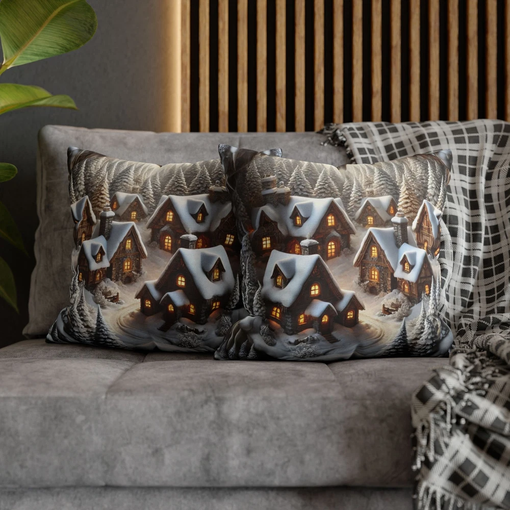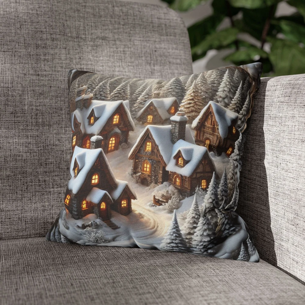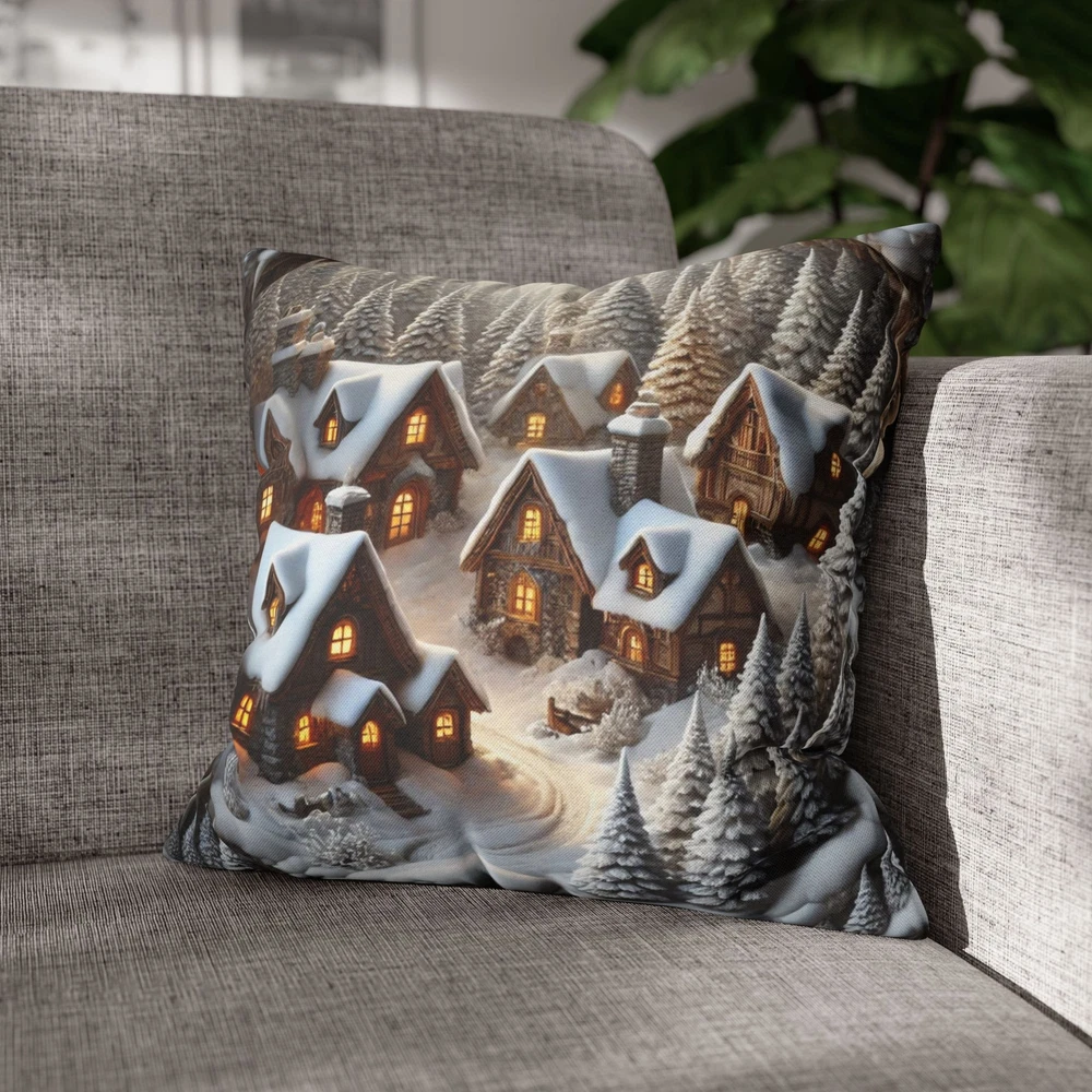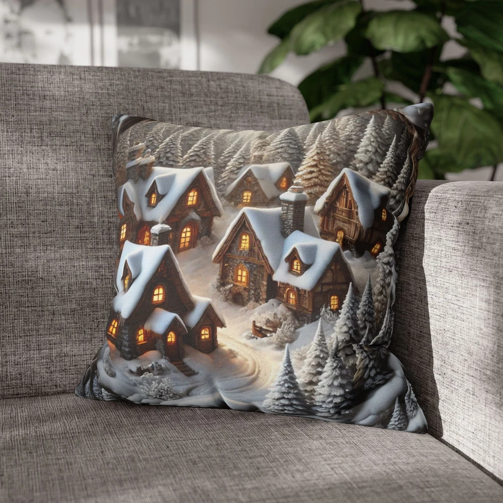 Transform your space into a serene winter wonderland with this Cozy Winter Village pillowcase. Featuring a charming snowy village scene with glowing cabin lights and frosted trees, this cushion cover brings the warmth and magic of the holiday season into your home. Perfect for holiday decor or as a seasonal accent, it adds a touch of rustic charm to any space. Crafted from premium 100% spun polyester, this pillowcase offers durability and a vibrant print on both sides. The concealed beige zipper ensures a polished, seamless look. Pillow insert not included for flexible styling. Available in multiple sizes to fit your decor needs: 14” × 14” (Width: 14", Length: 14") 16” × 16” (Width: 16", Length: 16") 18” × 18” (Width: 18", Length: 18") 20” × 20” (Width: 20", Length: 20") Product Features: Material: 100% spun polyester for vibrant colors and long-lasting use Closure: Concealed beige zipper for a clean finish Design: Double-sided print showcasing a cozy, illuminated winter village Sizes: Available in 14", 16", 18", and 20" square sizes Pillow Insert: Not included, allowing for customizable firmness Care Instructions: Remove the pillowcase before washing. Spot clean with mild soapy water and a soft cloth as needed. Machine wash on a gentle cycle in cold water; avoid bleach and tumble drying. Iron on low heat if required. Perfect For: Holiday and Christmas-themed home decor Living rooms, bedrooms, or cozy nooks Gifts for friends and family who love winter scenes Adding a nostalgic holiday touch to your home Bring the charm of a winter village into your home and create a cozy, festive ambiance with this beautifully detailed pillowcase!