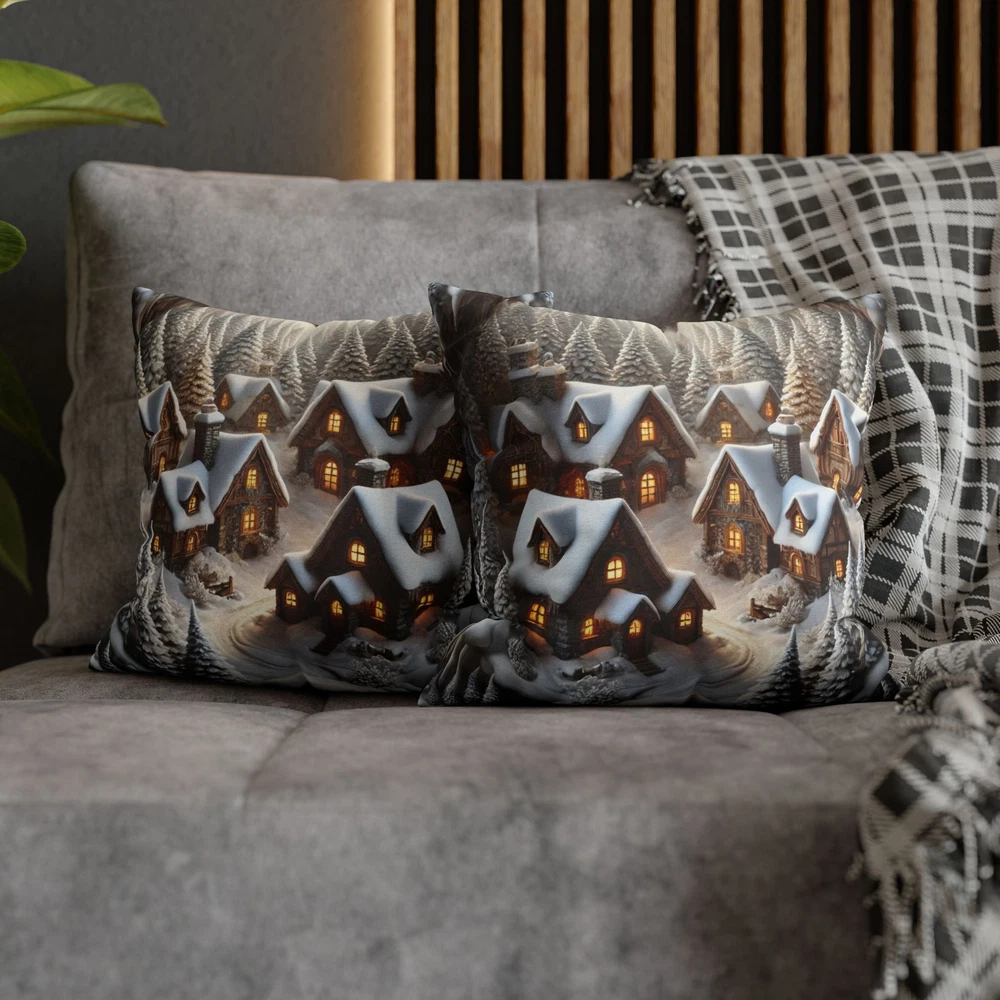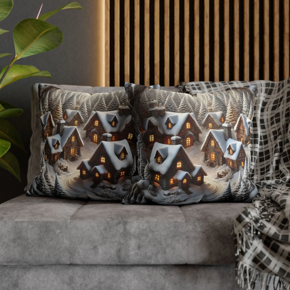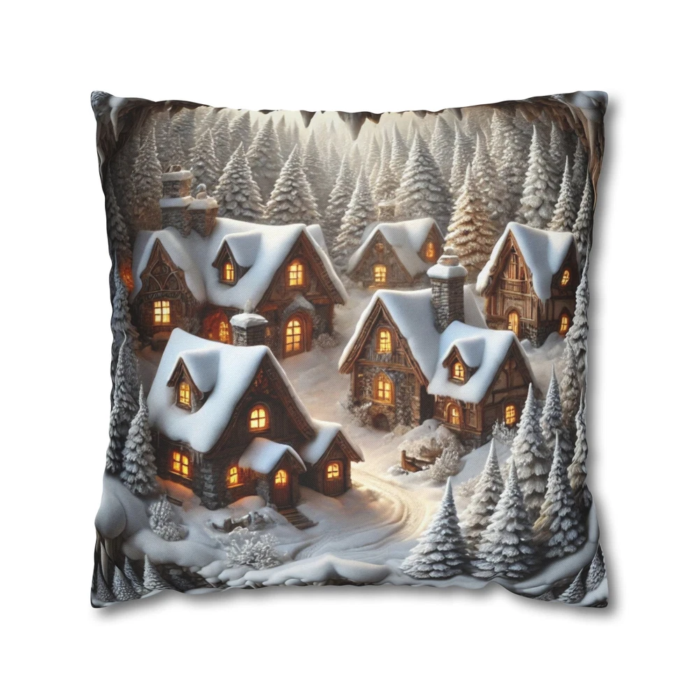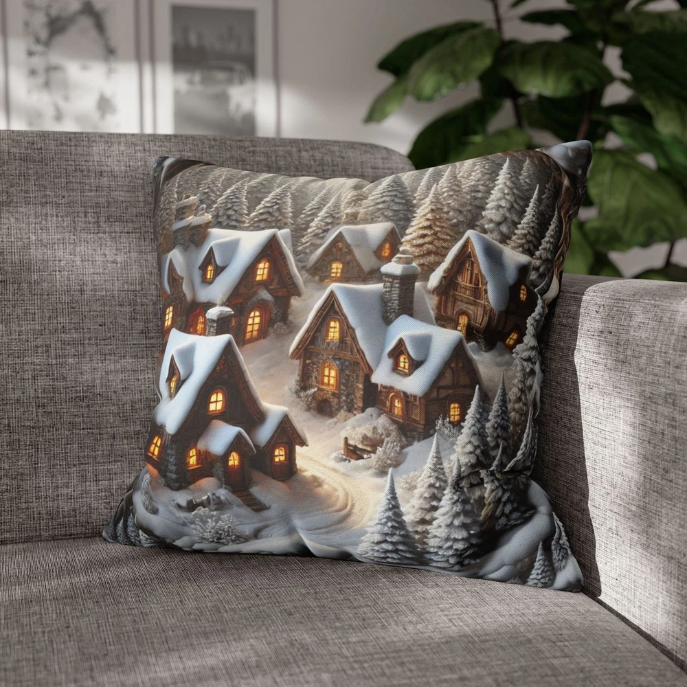 Transform your space into a serene winter wonderland with this Cozy Winter Village pillowcase. Featuring a charming snowy village scene with glowing cabin lights and frosted trees, this cushion cover brings the warmth and magic of the holiday season into your home. Perfect for holiday decor or as a seasonal accent, it adds a touch of rustic charm to any space. Crafted from premium 100% spun polyester, this pillowcase offers durability and a vibrant print on both sides. The concealed beige zipper ensures a polished, seamless look. Pillow insert not included for flexible styling. Available in multiple sizes to fit your decor needs: 14” × 14” (Width: 14", Length: 14") 16” × 16” (Width: 16", Length: 16") 18” × 18” (Width: 18", Length: 18") 20” × 20” (Width: 20", Length: 20") Product Features: Material: 100% spun polyester for vibrant colors and long-lasting use Closure: Concealed beige zipper for a clean finish Design: Double-sided print showcasing a cozy, illuminated winter village Sizes: Available in 14", 16", 18", and 20" square sizes Pillow Insert: Not included, allowing for customizable firmness Care Instructions: Remove the pillowcase before washing. Spot clean with mild soapy water and a soft cloth as needed. Machine wash on a gentle cycle in cold water; avoid bleach and tumble drying. Iron on low heat if required. Perfect For: Holiday and Christmas-themed home decor Living rooms, bedrooms, or cozy nooks Gifts for friends and family who love winter scenes Adding a nostalgic holiday touch to your home Bring the charm of a winter village into your home and create a cozy, festive ambiance with this beautifully detailed pillowcase!