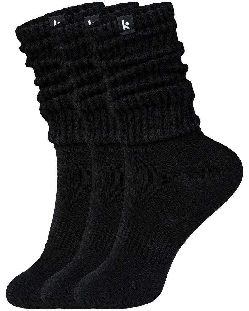 Step into comfort and style with the Cozy Socks 3-Pair Pack. Designed for ultimate coziness and versatility, these scrunch long crew socks are perfect for lounging, working out, or everyday wear. Made from a soft, breathable fabric blend, they keep your feet feeling fresh and comfortable throughout the day, whether you're at the gym, running errands, or relaxing at home. ALL-DAY COMFORT: Embrace the 90s vibe with our scrunch socks for women, designed for lasting comfort and retro style. Perfect for pairing with 90s outfits or casual looks, these women’s socks blend softness with vintage flair. CASUAL CHIC: Elevate your activewear with our white long socks for women, perfect as boot socks or a stylish addition to any outfit. These versatile socks bring cozy comfort and a sporty, chic look to everyday wear. TIMELESS ELEGANCE: Discover effortless style with our slouchy socks for women, designed to add a touch of relaxed sophistication to any outfit. Perfect for layering or lounging, these socks bring a timeless look to your wardrobe. WARDROBE MUST-HAVE: Complete your essentials with our women's crew socks, crafted for versatility and everyday comfort. These must-have socks are perfect for any occasion, adding a classic touch to every outfit. STYLE WITH A TWIST: Add a playful flair to your look with our ruffle and scrunch socks for women. These trendy socks bring texture and charm to any outfit, making them a fun, stylish choice for everyday wear.