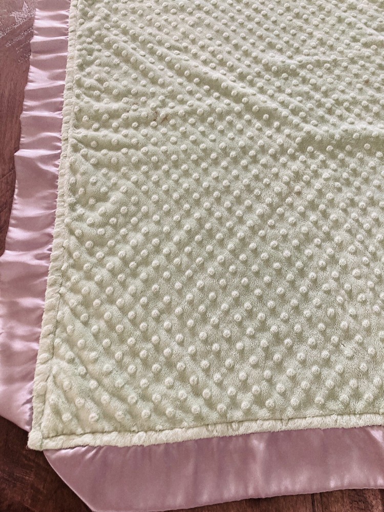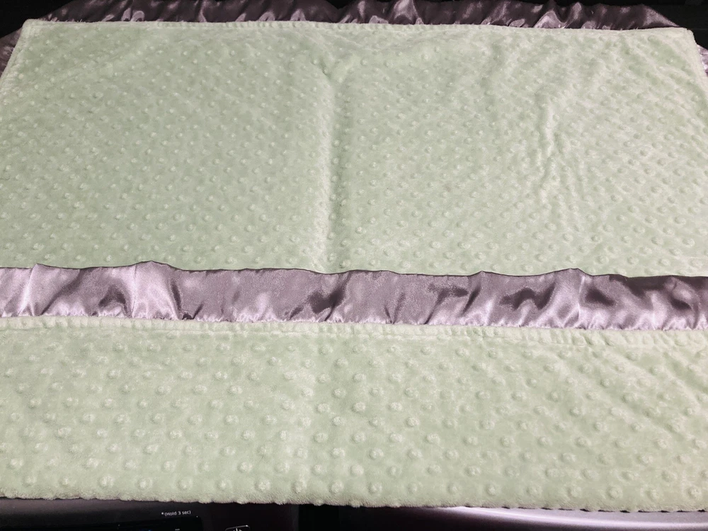 Nice cozy soft blanket for babies. Cozy woozy. Satin edge. 38.5” x 33.5”. In great condition. See all pictures as they are part of the description. No holes or rips. The green is brighter than the pictures. The last picture is the best but it’s still more vivid than that.