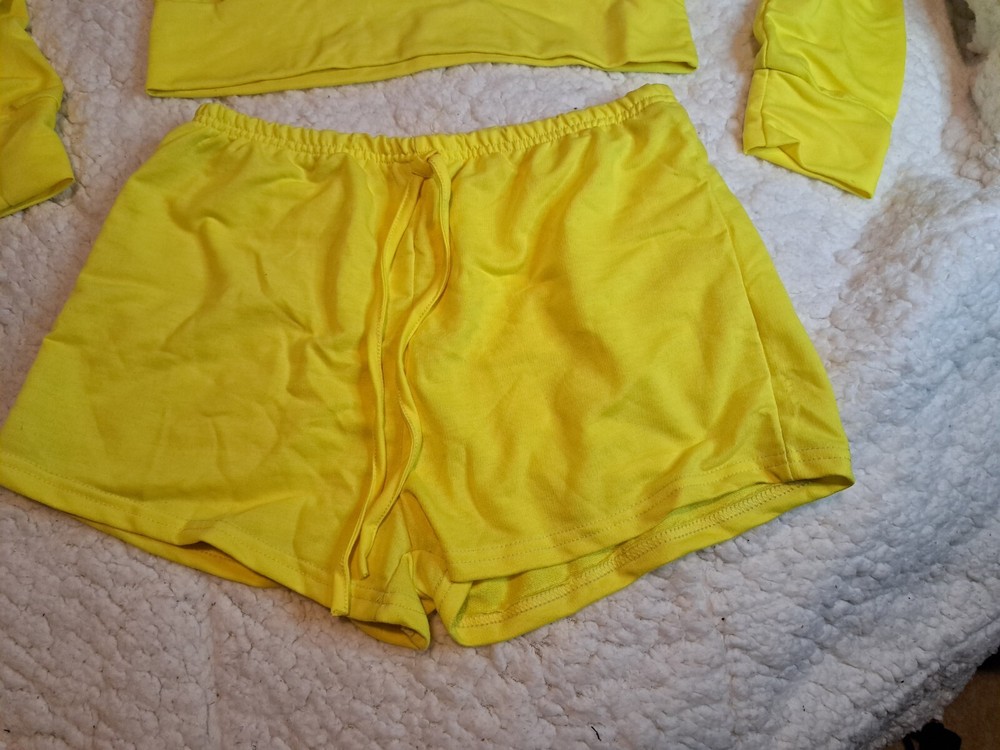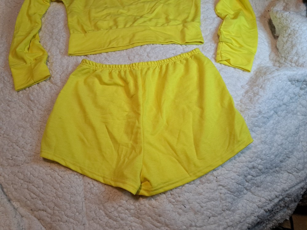 Snuggle up in this comfy pajama set featuring a cute angel character design. The long sleeve top and shorts are made from a soft cotton blend fabric with a drawstring accent for added charm. This yellow pajama set is perfect for lounging around the house during the winter and spring seasons. The pull-on closure makes it easy to slip into and the size is perfect for women who wear a size large. The cartoon and modern theme of this pajama set adds a playful touch, while the Charmed and Home character family give a sense of nostalgia. Get ready for a cozy night's sleep with this cute and comfortable pajama set.