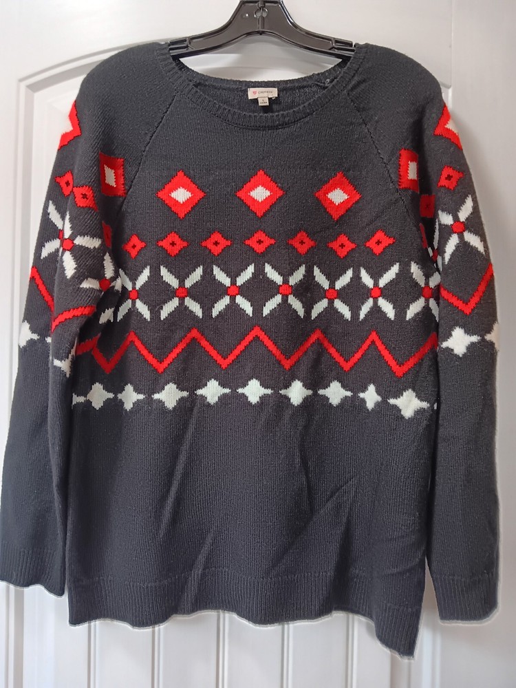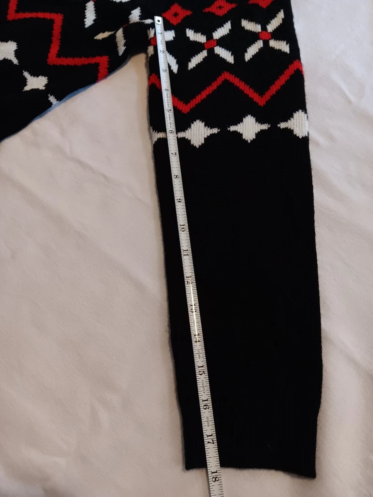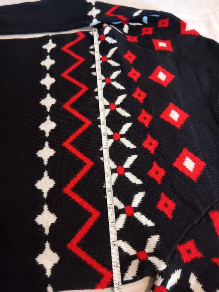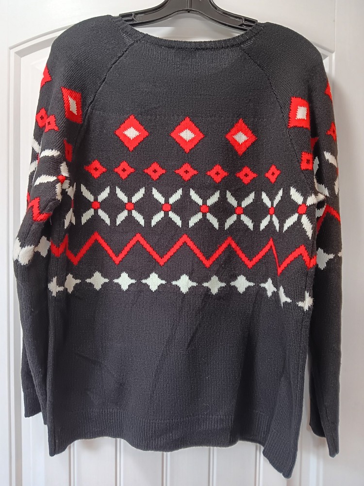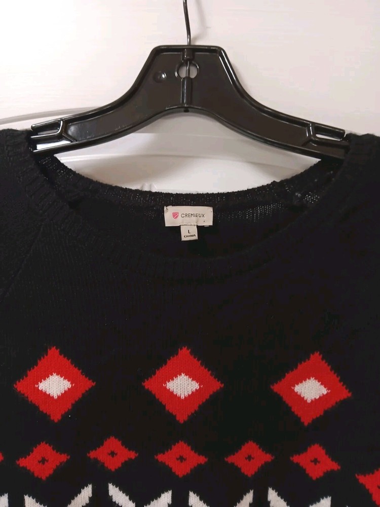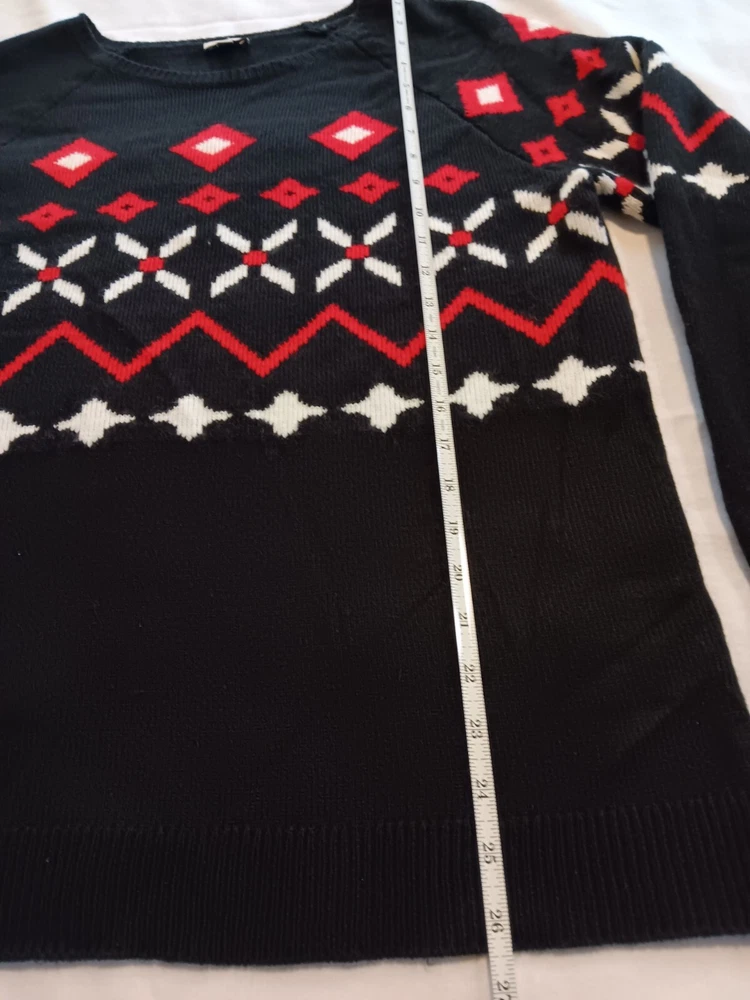 This Cremieux women's pullover knit sweater is the perfect addition to any wardrobe. The tight-knit geometric pattern in black, red, and white gives it a classic outdoor look that is both cozy and stylish. Made of 100% acrylic fabric, this long-sleeved sweater is perfect for travel and casual wear, and can be easily hand washed to keep it looking its best. It features a round neckline and regular fit, making it comfortable and flattering for any body type. The Nordic-inspired theme and granny style make it a unique and trendy piece that will keep you warm and fashionable throughout the fall, winter, and spring seasons. Please see pics for overall condition and measurements for sizing. Thank you