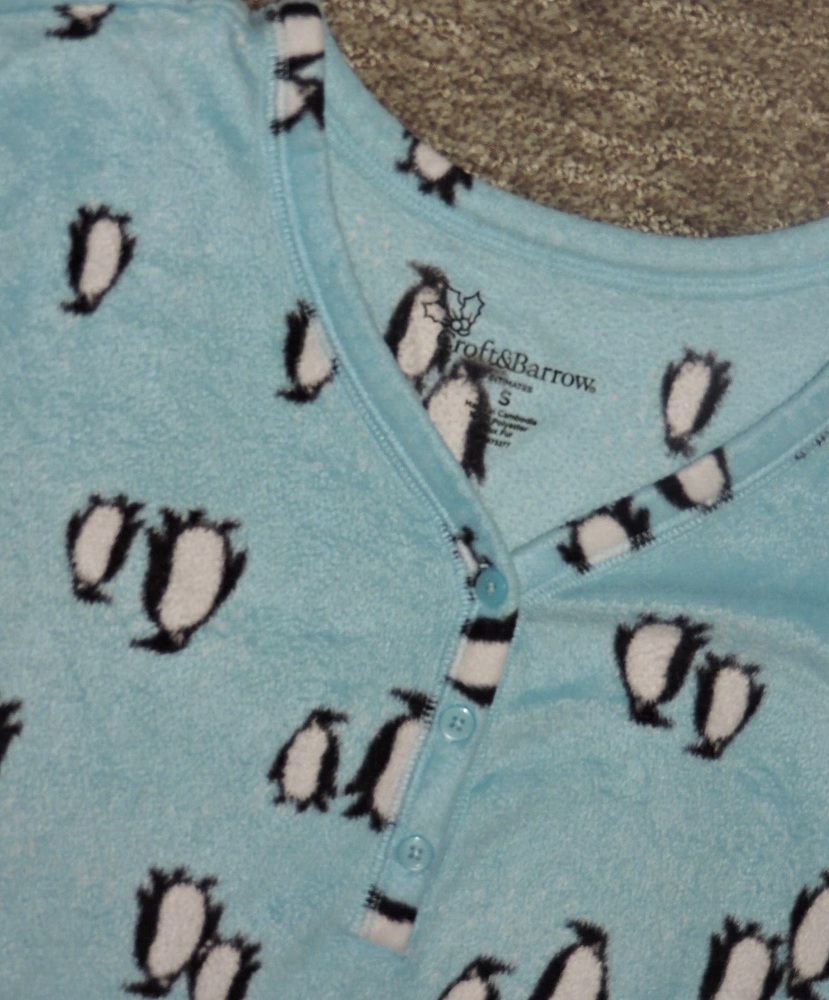 Croft And Barrow Brand Penguin design Fleece sleepshirt SZ S 100% poly 36" bust