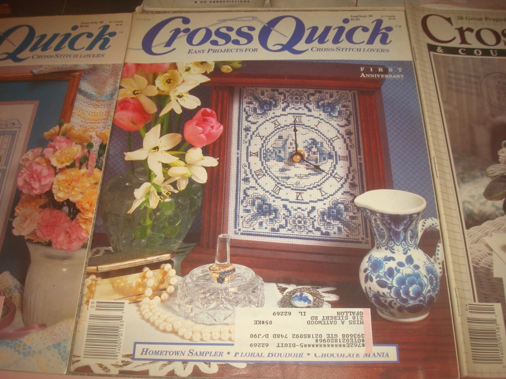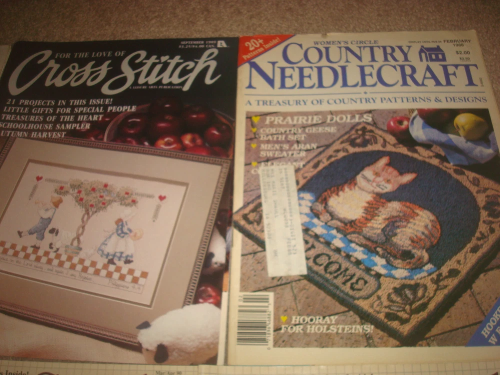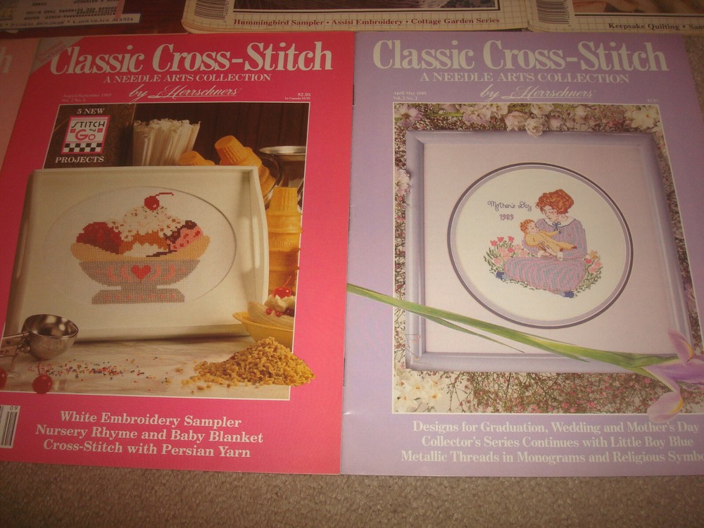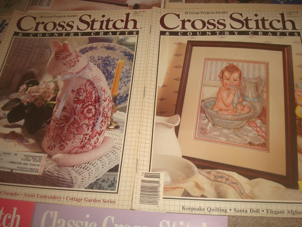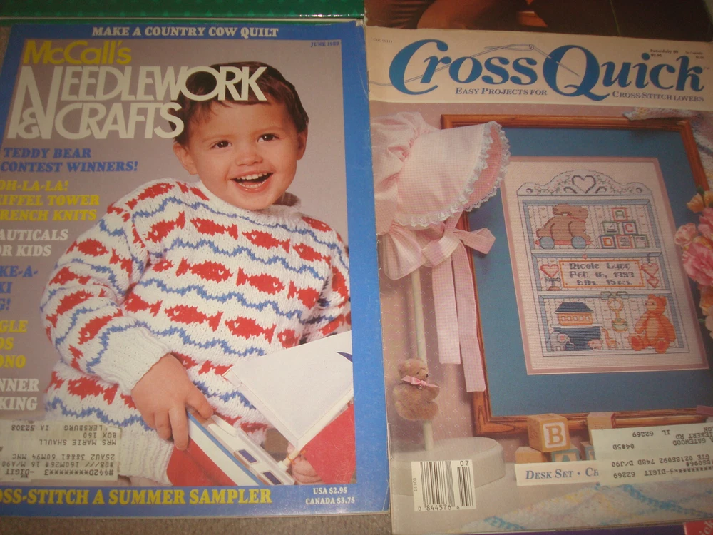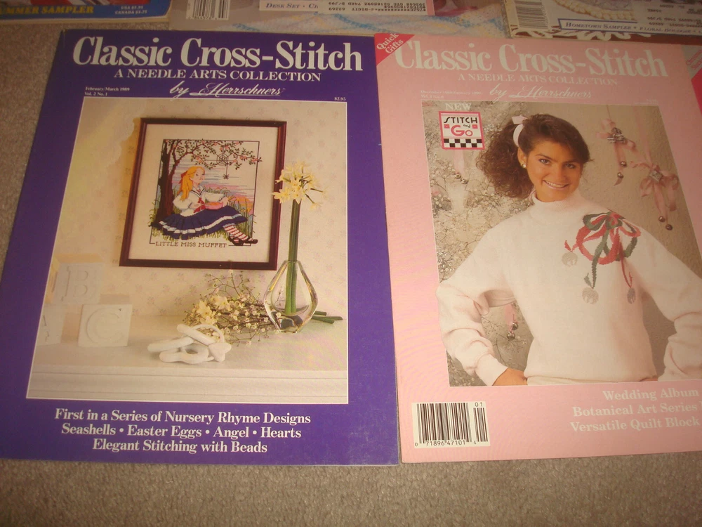 Classic Cross-Stitch - Vol. 2 No. 1 - February/March 1989 Classic Cross-Stitch - Vol. 2 No. 2 - April/May 1989 Classic Cross-Stitch - Vol. 2 No. 4 - August/September 1989 Classic Cross-Stitch - Vol. 2 No. 6 - December 1989/January 1990 Cross Stitch & Country Crafts - Sept/Oct 90 Cross Stitch & Country Crafts - Mar/ Apr 90 Cross Quick - June/July 89 Cross Quick - Aug/Sept 89 McCall's Needlework & Crafts - June 1989 Women's Circle Country Needlecraft - February 1988 For the Love of Cross Stitch - September 1989 Teach Yourself to Knit The Easy Way - Book 744 Teach Yourself to Crochet - Book 777 Better Homes and Gardens - Christmas Cross-Stitch (Hardcover) 14 Magazines total. Cross Stitch & Country Crafts Sept/Oct 90 has a square cut out of the back cover, and some water damage to the bottom edges of the magazine. You can still read everything just fine. Teach Yourself To Crochet also has some water damage to the top right corner of the magazine, the pages are slightly warped from this, but you can still read everything. The other magazines all have small amount of shelf wear, a few small scrapes, marks, rips, and bends around the edges, no major damage. From a nonsmoking home. Will ship insured, in a sturdy box. Please see the pictures for a better description. They are actual pictures from this auction, not stock images. You are looking at exactly what you are bidding on. Everything I sell will be shipped padded. Will arrive just as you see it. USA only. Paypal only. If you have any questions, feel free to ask.
