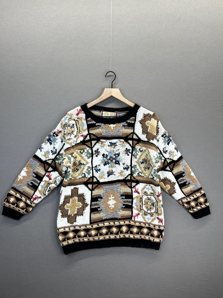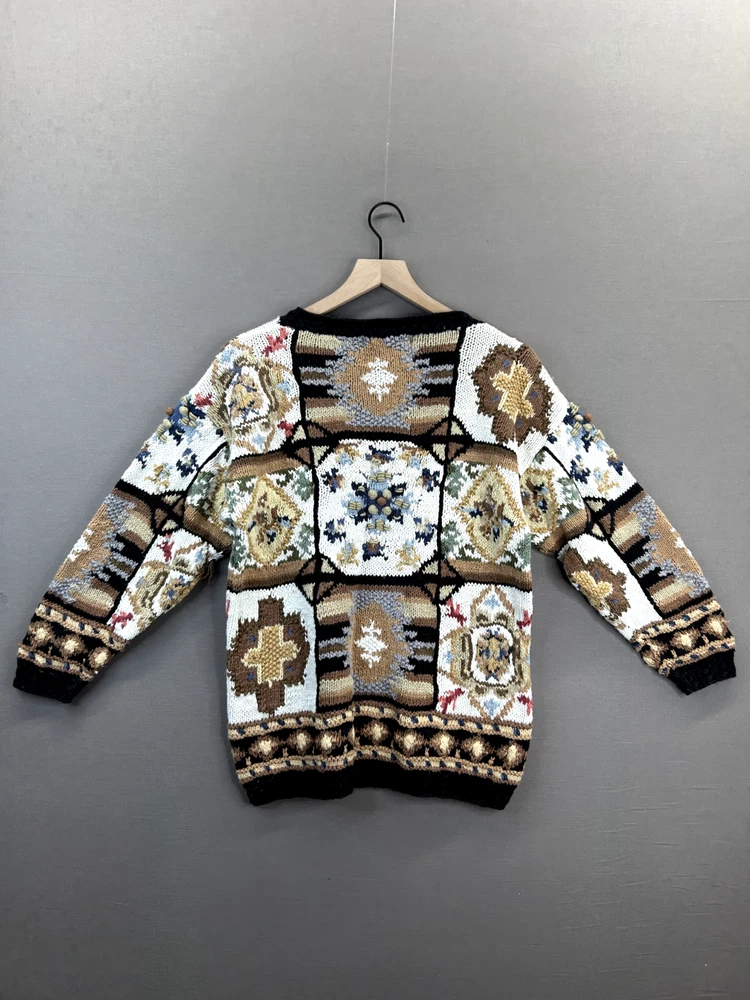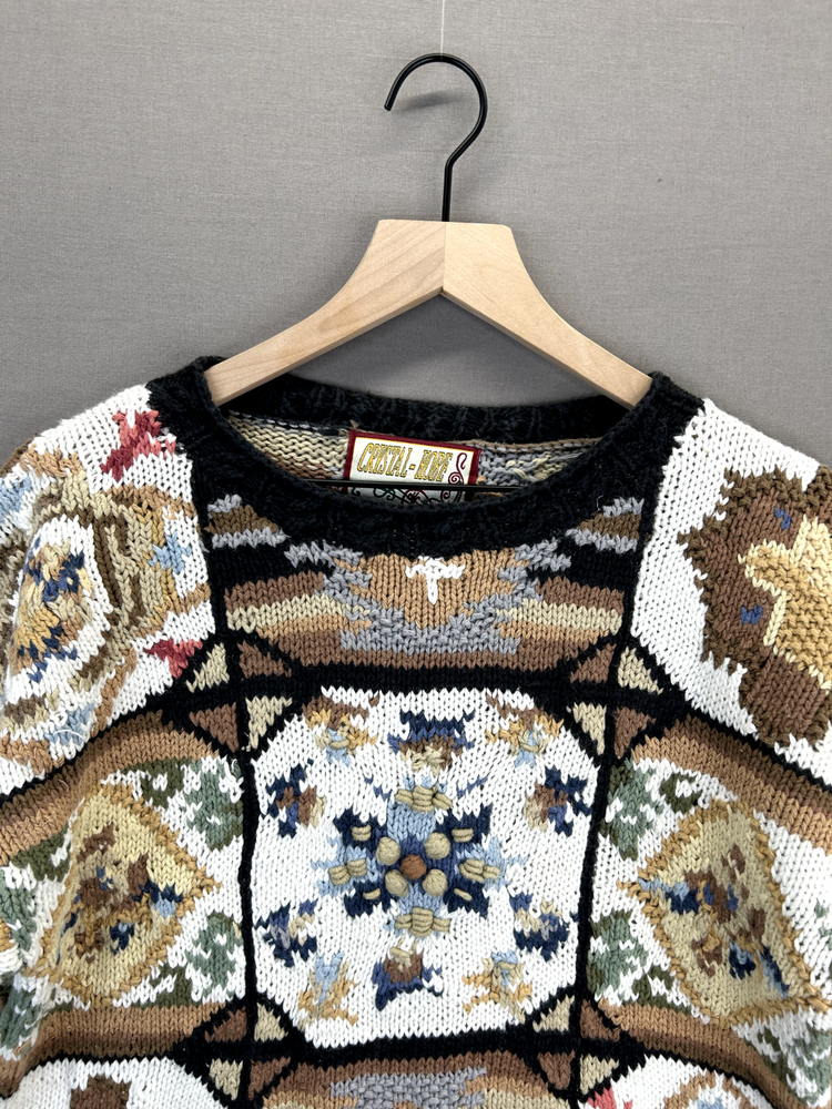 Colorful Crystal Kobe Womens Multicolor Knit Sweatshirt Long Sleeve Crew Neck Size S