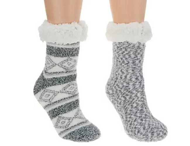 Cuddl Duds Black Stripe Faux Sherpa Cozy Lined Gripper Socks O/S New Loungewear Description Cuddl Duds Socks Ideal for snuggling up on a snowy day or keeping cozy on a wintery weekend, these sherpa-lined, non-slip bottom cabin socks give you the freedom of socks with the comfort of slippers. From Cuddl Duds. Be sure to check all the colors we have in our Ebay store. The features are: Brand new without tags One size: fits shoe sizes 4-10 Features: plush fill sock with Sherpa cuff and lining, non-slip grip bottom Content: 81% polyester/18% nylon/1% spandex or 99% polyester/1% spandex; 100% polyester lining Care: machine wash, tumble dry Be sure to check out my EBAY STORE. Enjoy! Payment, Shipping & Return Information U.S. Buyers to pay shipping and handling of 0 for 1st item. For each additional item add 0 . For shipping discount to apply, all items need to paid in one combined payment. Missouri Residents to pay Sales Tax Items may returned in original condition for a refund of the purchase price. Shipping costs will not be refunded, unless an error was made by us. International Shipping rates: Canada via 1st class international: 14.95 Worldwide via 1st class international: 21.95 For Multiple item shipping discounts, Priority Mail or Express Mail International please contact me for a shipping Quote International Buyers - Please note: Import duties, taxes and charges are not included in the item price or shipping charges. These charges are the buyer's responsibility. Please check with your country's customs office to determine what these additional costs will be prior to bidding/buying. Due to the USPS raising international shipping costs, I may have to package without the shoeboxes for some International Shipments. We accept Paypal. Thanks for Looking.