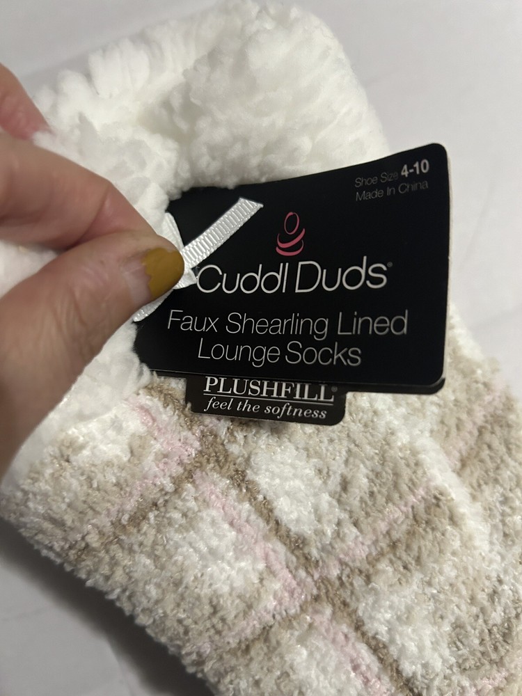 Cuddl Duds Faux Shearling Cozy Lined Slipper Lounge Socks Plushfilled Color Ivory with pink and brown Terms & Conditions Payment: Payment is due within 4 days from day of purchase. (Please only Buy if you intend to Pay) All Orders will be shipped out to the address on file. Make sure your address is updated before you Buy. I will ship item(S) within 24 hours of cleared payment Monday - Friday. All items are shipped thru USPS with tracking. To qualify for shipping discount on Multiple Items. All items must be paid in one transaction. Once you are done shopping please request an adjusted invoice with correct shipping amount. I can not be held responsible for loss and/or damage items in possession by the USPS during Shipping/Delivery period. If you would like to buy insurance for your purchase at your own cost let me know right away so that I include this cost in the invoice. Returns: Returns are not accepted on any Cosmetic or Health care related item(S). Refund will be given once I have received returned item(s) in original unopened/Sealed condition. Shipping charges are non-refundable, unless it is my error. Feedback: I will reciprocate Positive feedback when buyer leaves positive feedback for me as a way of letting me know that buyer is satisfied with the purchase. International: Please Note: Import duties, taxes and charges are not included in the item price or shipping charges. These charges are the buyer's responsibility. Please check with your country's customs office to determine what these additional costs will be prior to bidding/buying. Please know your countries regulations & prohibited items as we are not responsible for seized merchandise. THANKS FOR LOOKING, HAVE A GREAT DAY