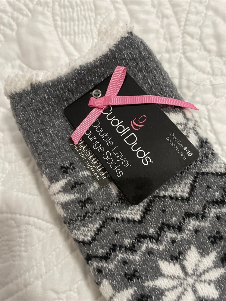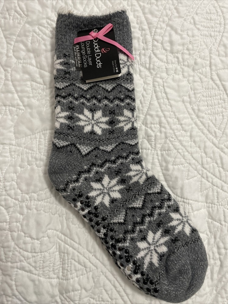 Treat your feet to ultimate comfort with these Cuddl Duds Fuzzy Socks. The faux sherpa lining will keep your feet warm and cozy. The mid-calf length and black color make these socks versatile for any outfit. Designed for women, these one-size socks fit most.