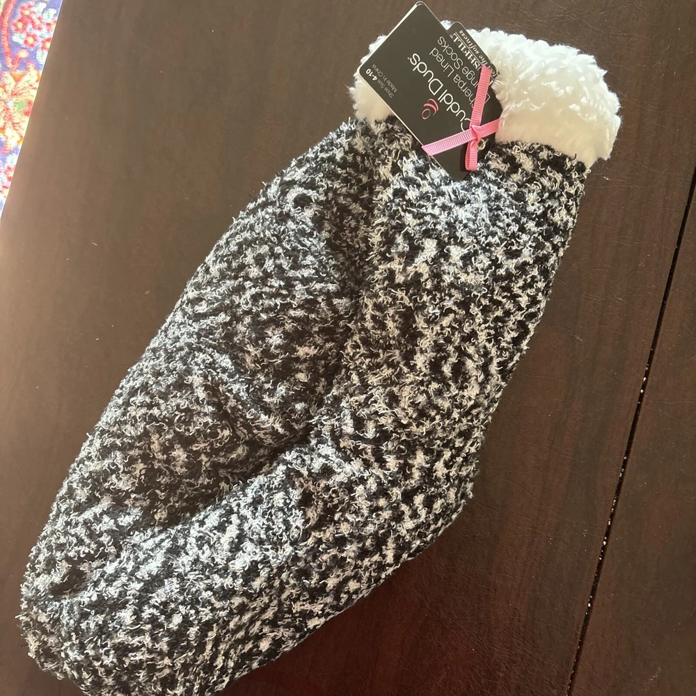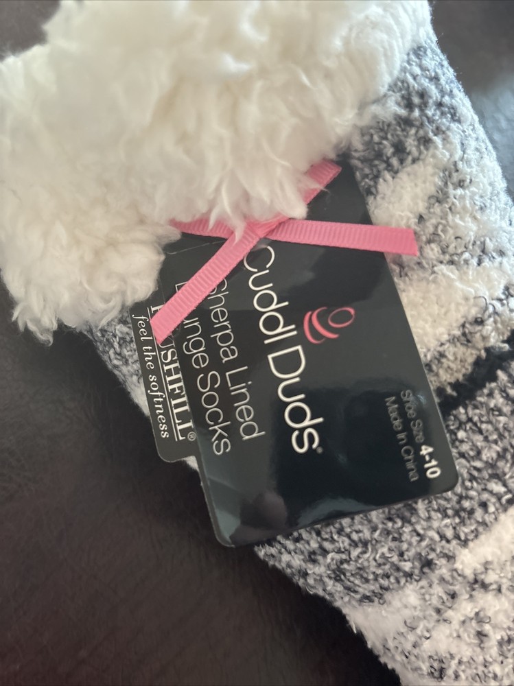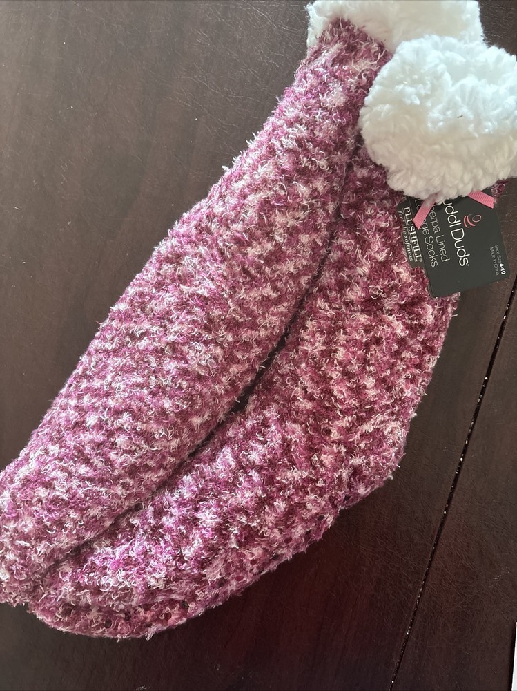 Indulge your feet in luxurious warmth and comfort with these Cuddl Duds Faux Sherpa Lined Lounge Socks. The socks are designed to keep your feet cozy and stylish during chilly days. They are available in a wide range of colors to match your outfit and mood. Crafted from a blend of polyester, nylon, and spandex, these socks are soft, durable, and easy to care for. The faux sherpa lining adds an extra layer of warmth and comfort, making them perfect for lounging at home or sleeping. These socks are a must-have for any fashion-savvy woman who wants to stay comfortable and stylish at the same time.
