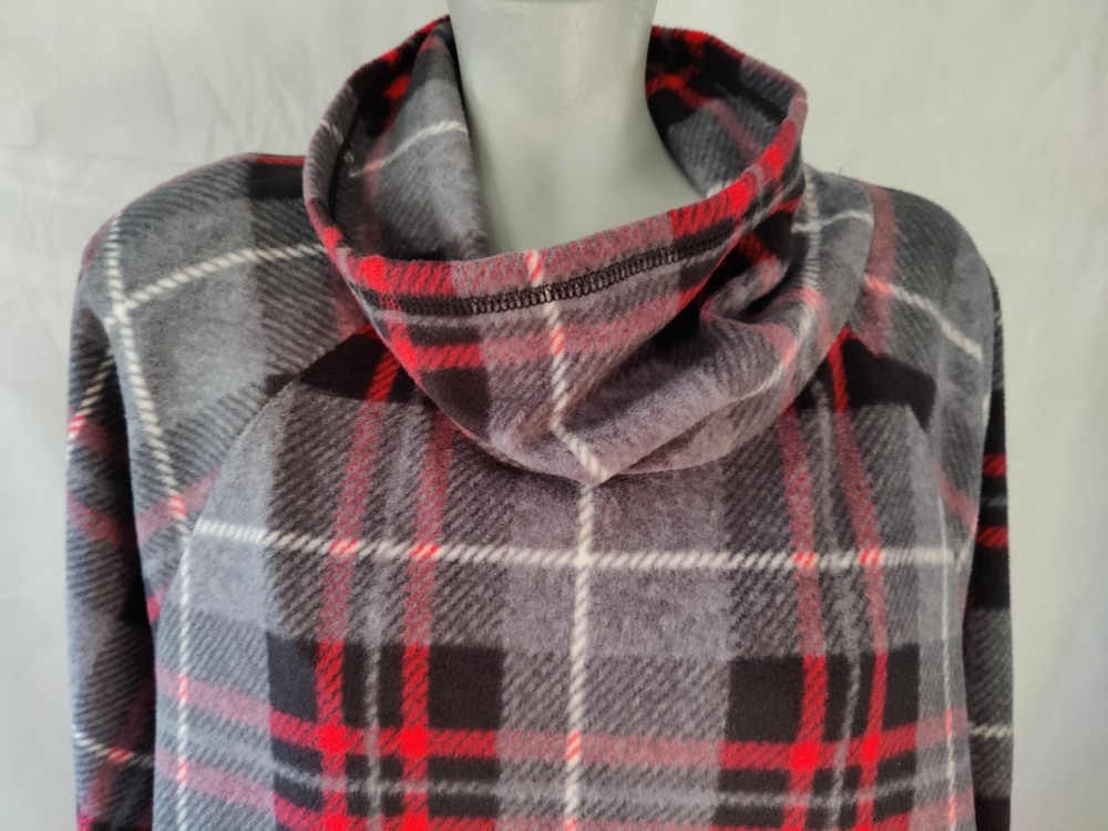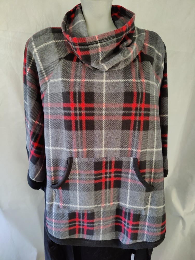 Cuddl Duds Plaid Poncho Pullover with short sleeves. Mock Turtleneck. Two front pockets. I bought this, wore it once, but never wore it again. Smoke free home.