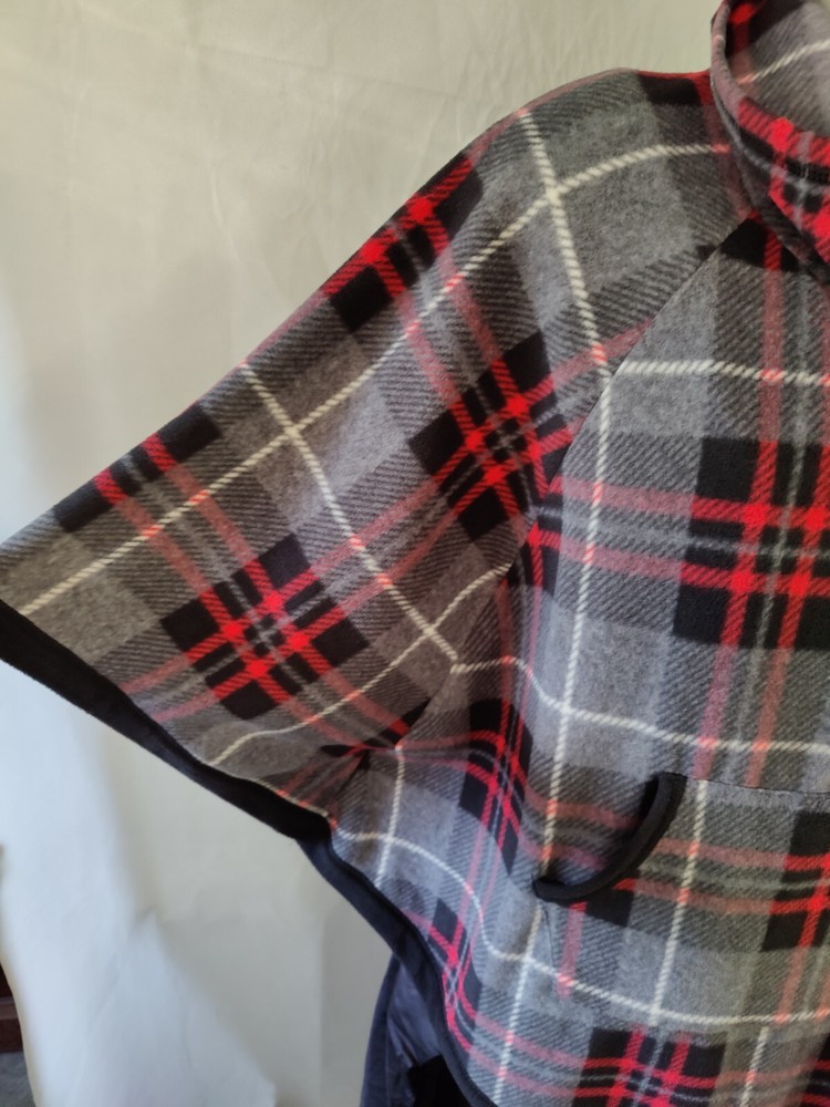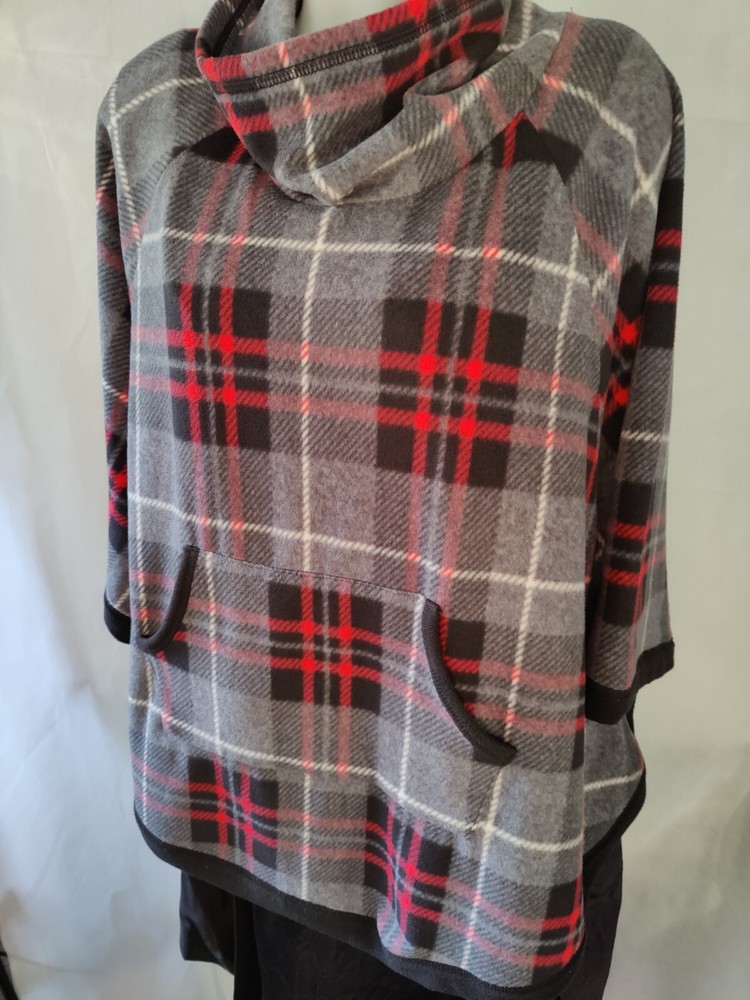 Cuddl Duds Plaid Poncho Pullover with short sleeves. Mock Turtleneck. Two front pockets. I bought this, wore it once, but never wore it again. Smoke free home....