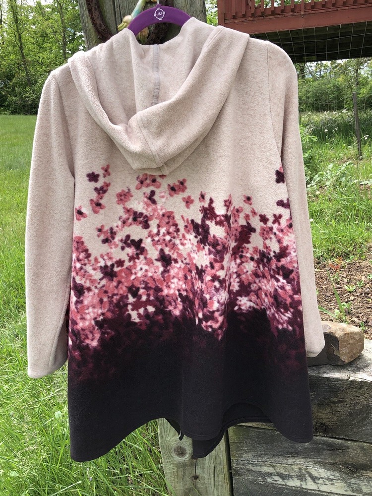 Elevate your wardrobe with this cozy and stylish Cuddl Duds jacket in a beautiful purple, pink, and light tan color scheme. The tight-knit floral pattern and fleece fabric make it perfect for winter, fall, and spring seasons. This cardigan features a V-neckline, long sleeves, and a hood for added warmth. The jacket also comes with various features such as collarless design, stretchy material, and tagless fabric, making it comfortable and convenient to wear. It has pockets for convenience and is machine washable for easy care. This jacket is ideal for travel, workwear, and casual occasions. Available in size L, this regular fit sweater is a must-have for any woman's wardrobe.
