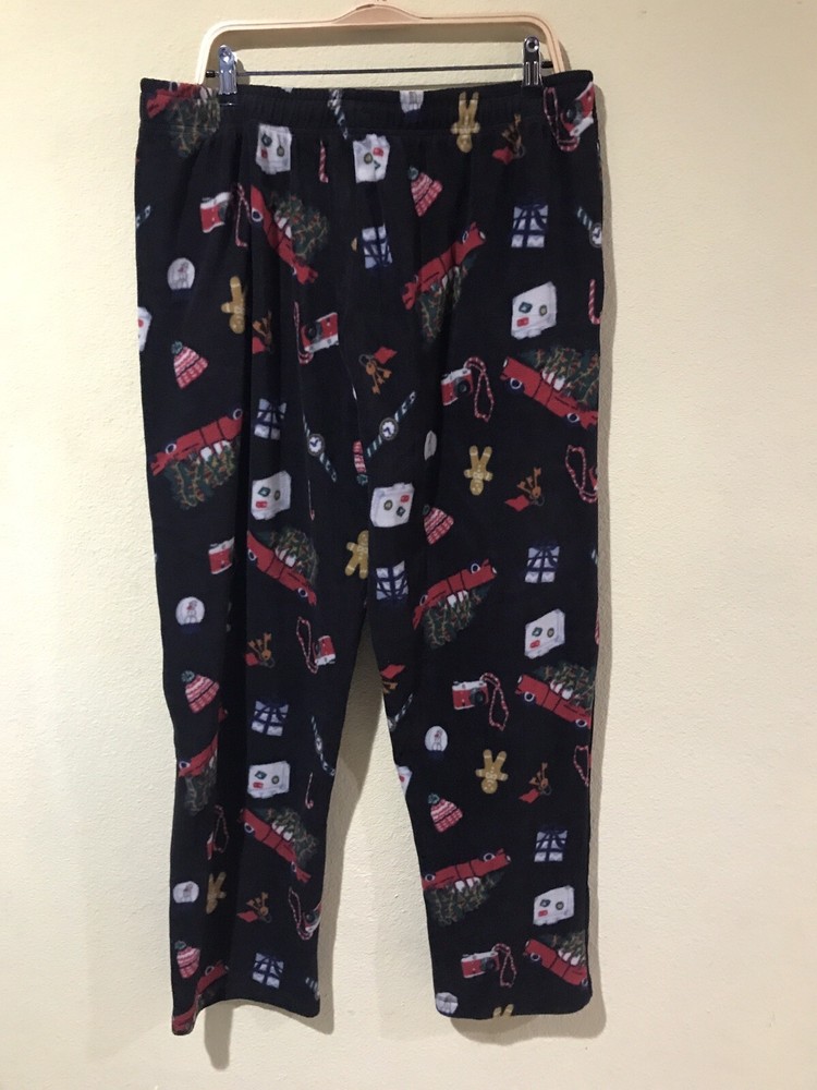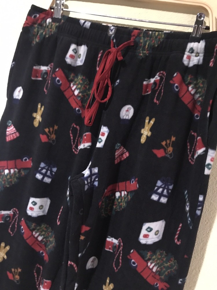 Cuddl Duds L Fleece Black Christmas Holiday Red Truck Pockets PJ Pajama Pants z8 Stunning PJ Pants Super soft fleece fabric Pull On Pockets Flat Front New Measurements laying flat: Waist 18" Inseam 32" Leg Opening 8.5"
