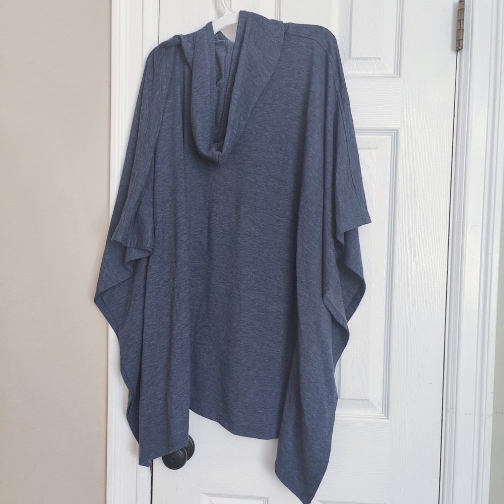 Introducing a gorgeous Cuddl Duds oversized women's poncho in size S/M, with a beautiful blue color that complements any style. This fashionable pullover hoodie features kimono sleeves and a relaxed fit, perfect for activewear or a bohemian-themed outfit. Made with a blend of spandex, rayon, and 100% polyester, this poncho is both comfortable and durable. Stay warm and stylish in the winter, fall, or spring with its oversized design and pullover closure. Don't miss out on adding this must-have piece to your wardrobe.