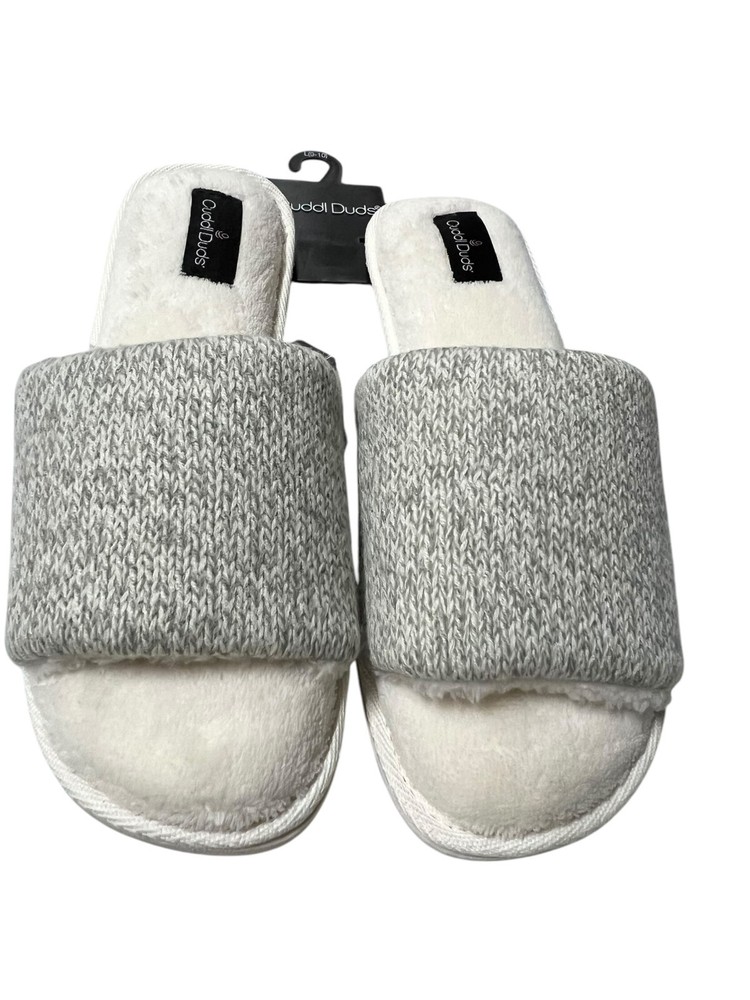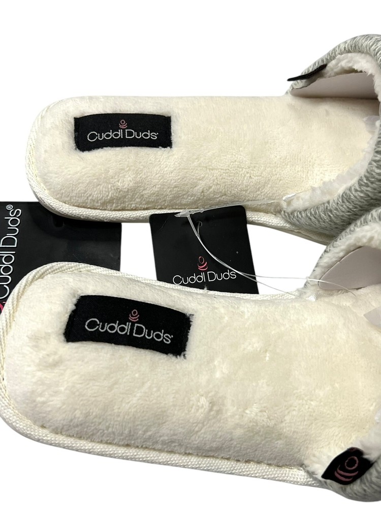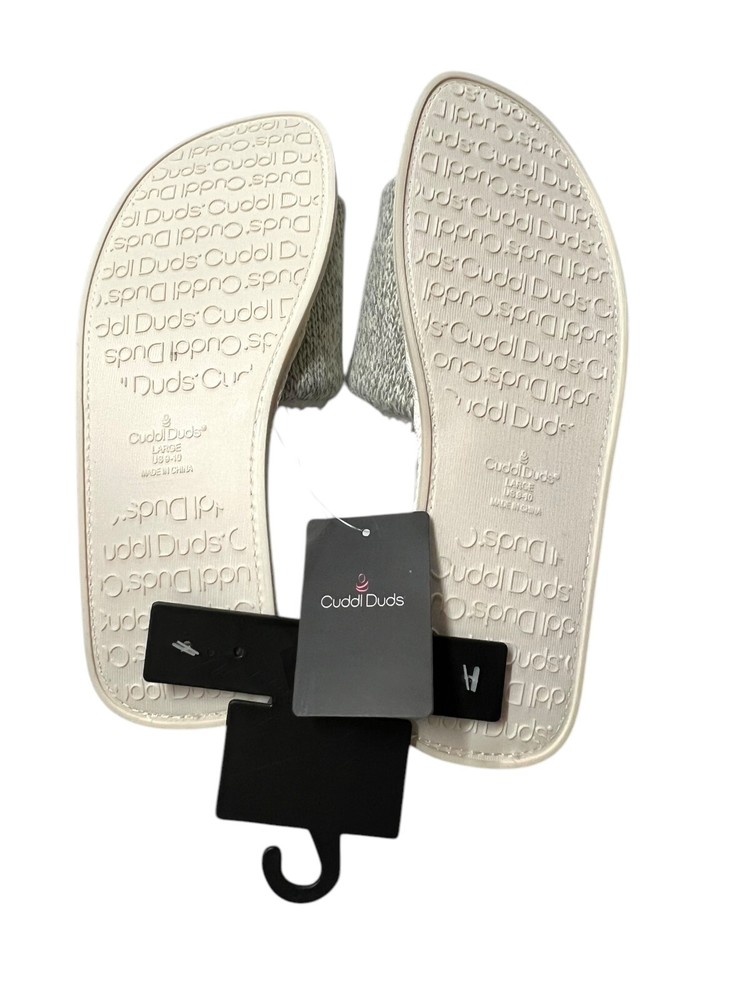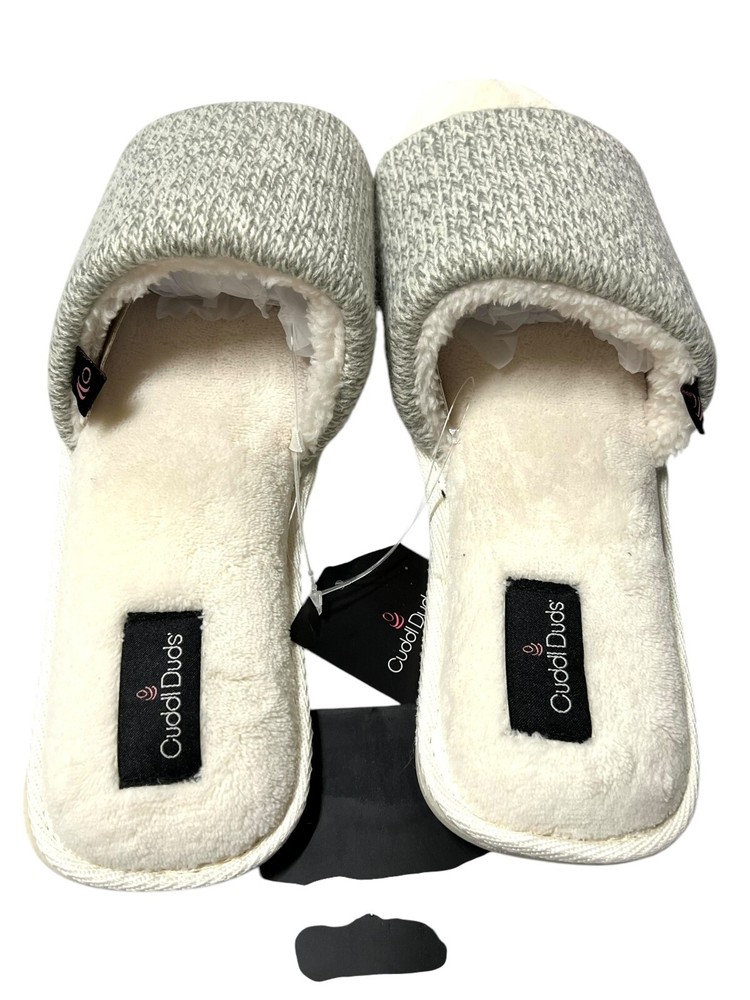 Cuddl Duds Slip On Slippers L (9-10) Gray Heather Ivory Velour Cozy Comfy New without box - will ship out in poly mailer bag I accept returns within 30 days. Item must be in same condition as it was received for refund. Please look at photos for the best description of the item and condition. Items come from smoke free home. While I try to describe everything flawlessly there is always a chance I miss something. Pictures say everything! Check out my feedback and buy with confidence!