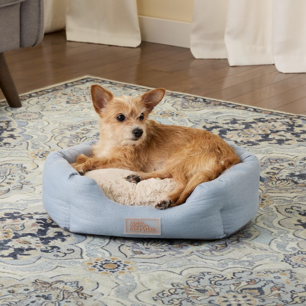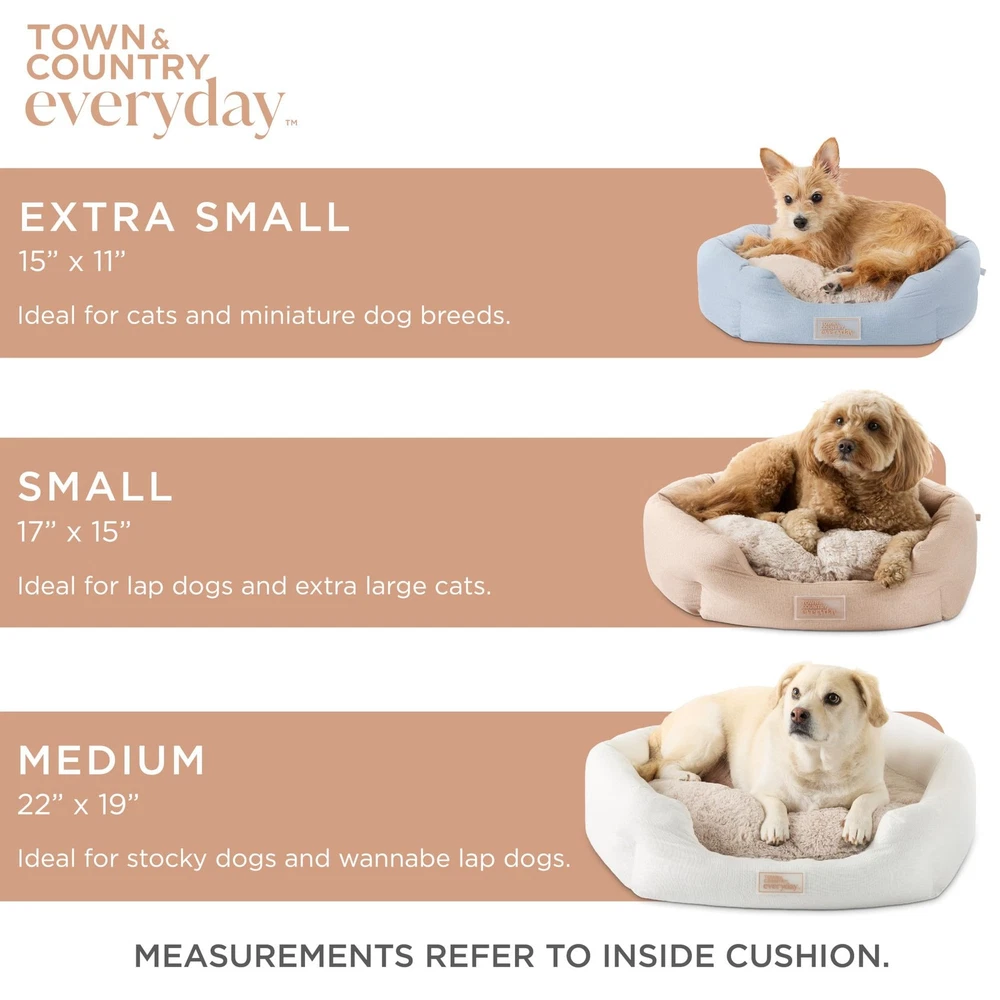 CuddleTown Faux Linen Comfy Cozy Cuddler Pet Bed Cozy pet bed measuring 19.69"x13.78"x5.91" appropriate for extra small pets machine washable cover Linen-look pet bed with super soft interior provides a comfortable sleep for pets who enjoy feeling snuggled and supported while resting Soft, cozy, and calming to reduce pet anxiety, with durable and breathable materials for long lasting use