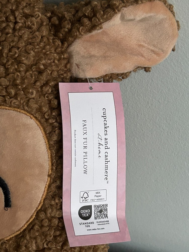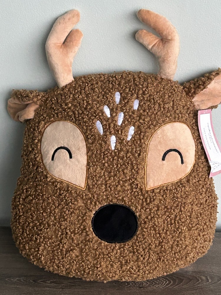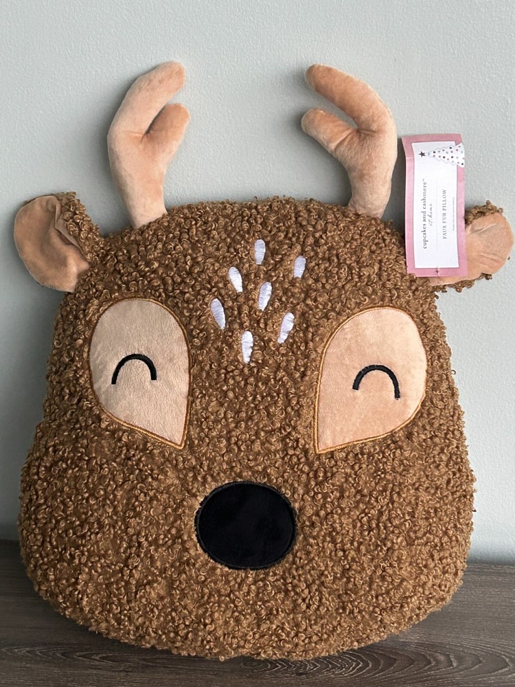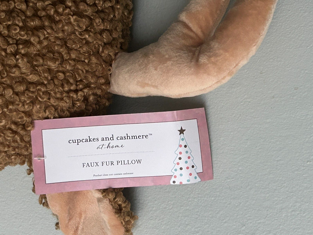 BRAND NEW! Cupcakes and Cashmere Christmas Reindeer Pillow Faux Fur. Decorate your home this Cupcakes and Cashmere Sherpa Cozy Reindeer Pillow. This is a Good Holiday Gift for your Friend. Color: Brown Pillow measures: - 15 in. x 16 in. Material: 100% Polyester Super Soft Faux Fur Spot clean only. RN 75343 Made in China. Pet and smoke FREE. NO RETURNS SORRY! PLEASE READ All sales are final. There are no returns so make sure you buy the right size and look at all the pictures of the item. Ask if you have any questions. THANK YOU!