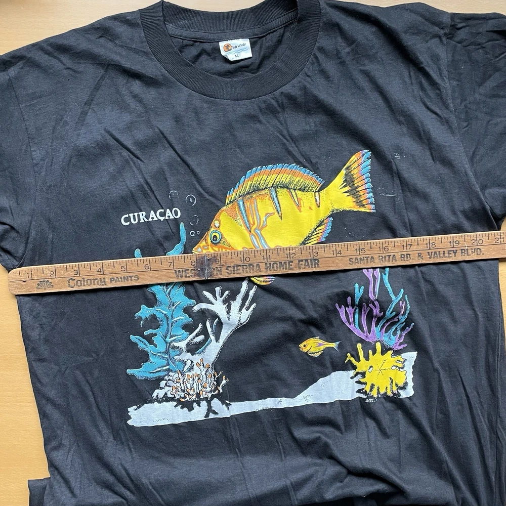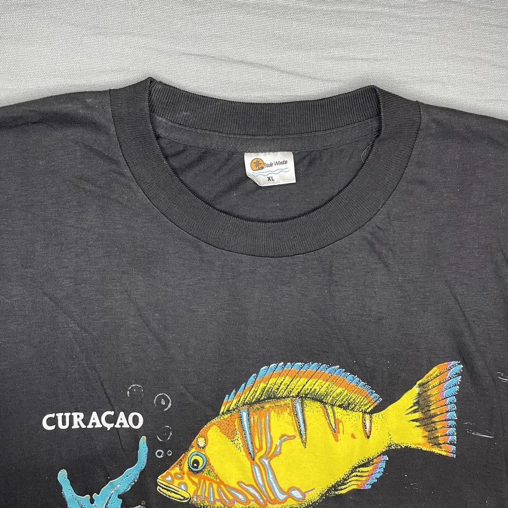Curacao Vintage T Shirt Men’s XL Black Short Sleeve Fish Tropical Trade Winds. Measurements laid flat: chest 21”, length 26.5”. Please review measurements for the best fit as sometimes vintage items have shrinkage. Graphic is in very good condition!