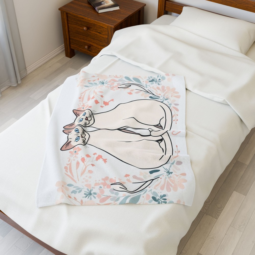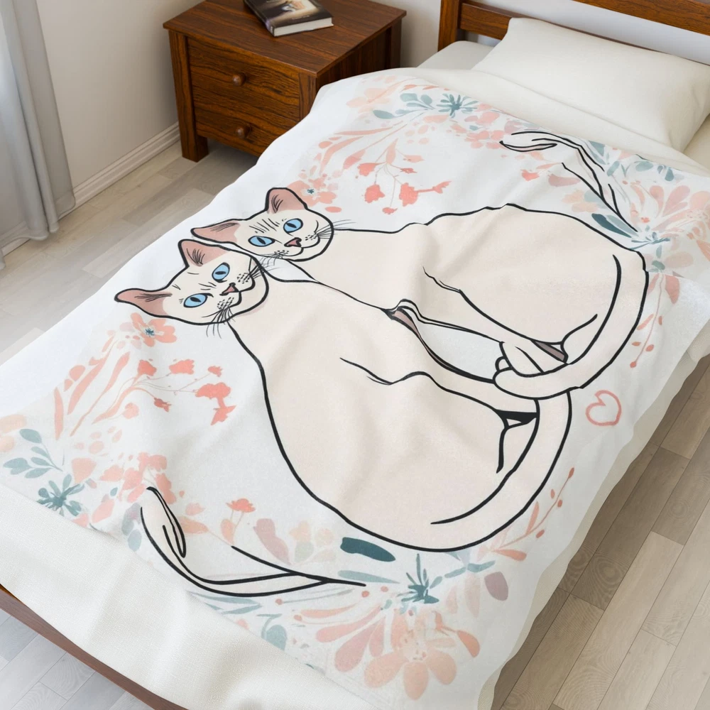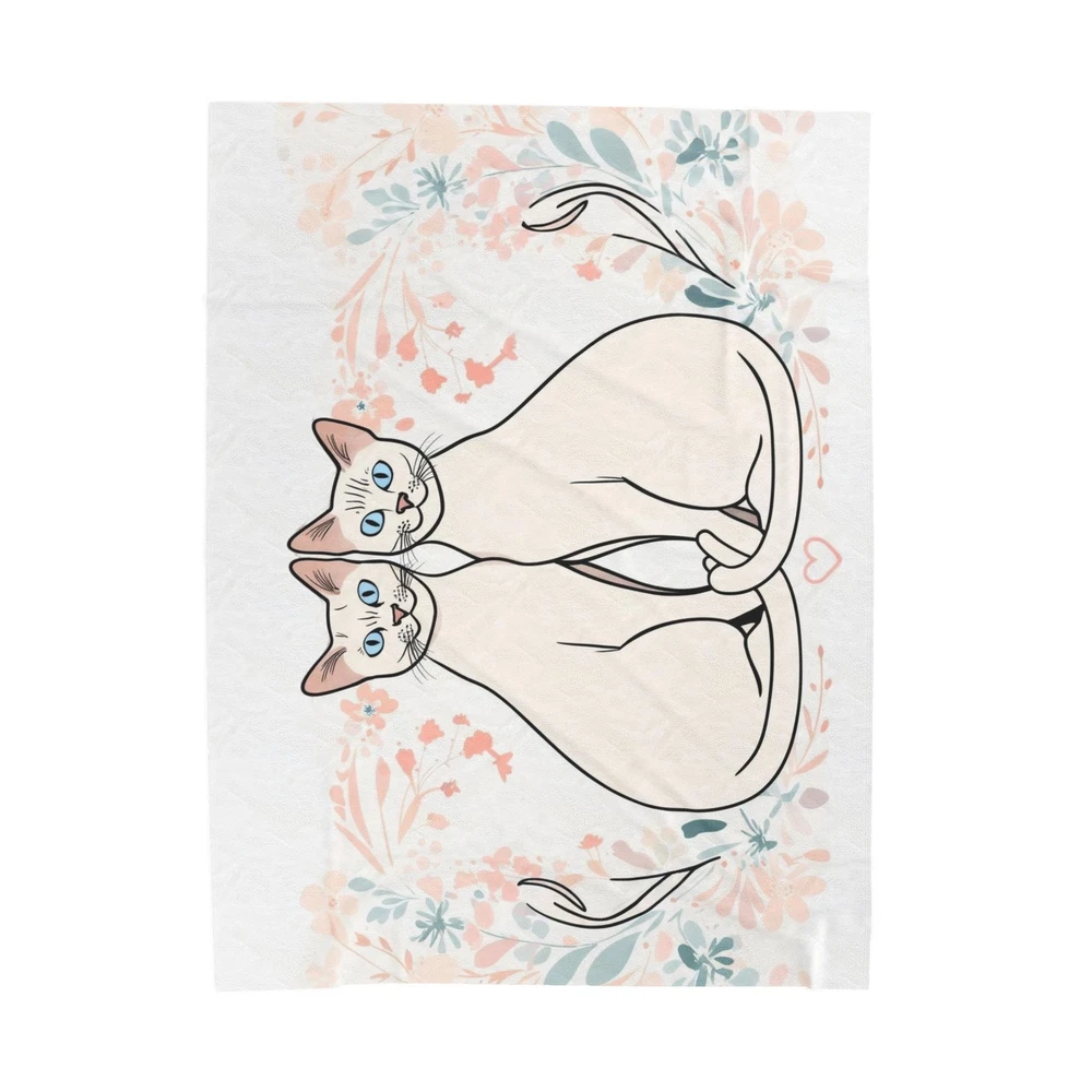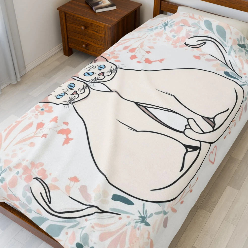 Wrap yourself in warmth and style with this velveteen plush blanket. Its soft, inviting texture makes it perfect for cozy evenings on the couch or adding a decorative touch to your bed. Ideal for cat lovers, this blanket features a whimsical design that celebrates companionship and affection. It's perfect for snuggling up during chilly nights or as a thoughtful gift for birthdays, housewarmings, or holidays. Whether you're relaxing at home or taking it to a picnic, this blanket brings comfort and charm to any occasion, making it a beloved addition to your living space. Product features - Durable double-needle topstitching ensures lasting quality. - Made from 100% polyester for a soft and cozy feel. - Vibrant, high-detail print on one side to elevate your decor. - Medium heavy-weight fabric provides warmth without being bulky. - Quick-drying material makes it convenient for everyday use. Care instructions - Do not dryclean - Do not iron - Tumble dry: low heat - Do not bleach - Machine wash: cold (max 30C or 90F), *hand wash will extend the quality of the product