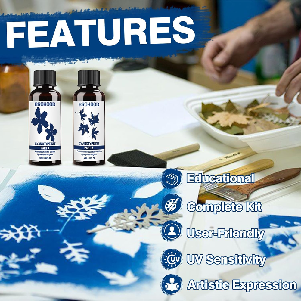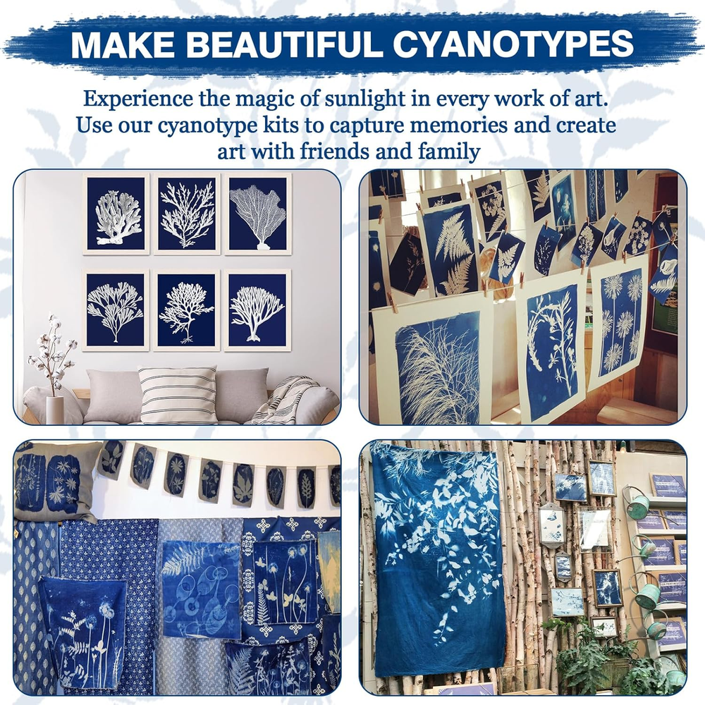 This cyanotype kit is so much fun! Just brush the solution on paper or fabric, arrange leaves or objects, and let the sun work its magic. After rinsing, you get beautiful blue prints—perfect for DIY art, crafts, or even teaching kids about photography. Works on cotton, wood, silk, and more. Super easy and creative!