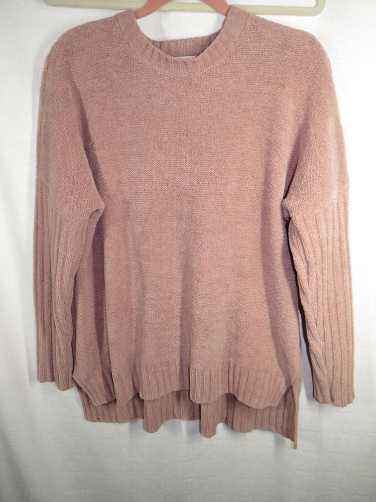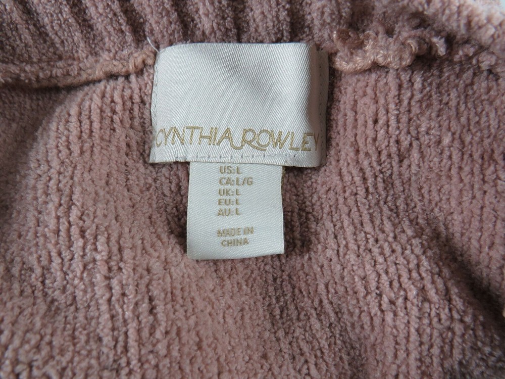 Cynthia Rowley blush chenille sweater with high-low hem. Good condition. Women's size Large. Bust is 48" relaxed and 58" gently stretched Hip is 50" relaxed and 62" gently stretched Length is 26" from top of shoulder to bottom hem at the front and 28 1/2" at the back Smoke free, pet free home