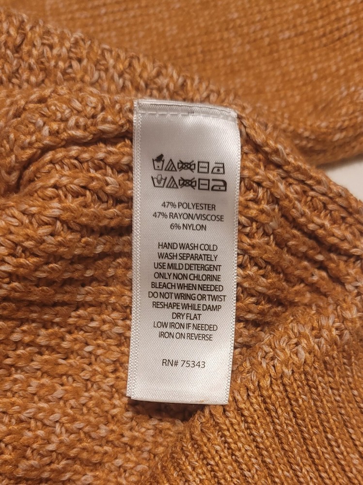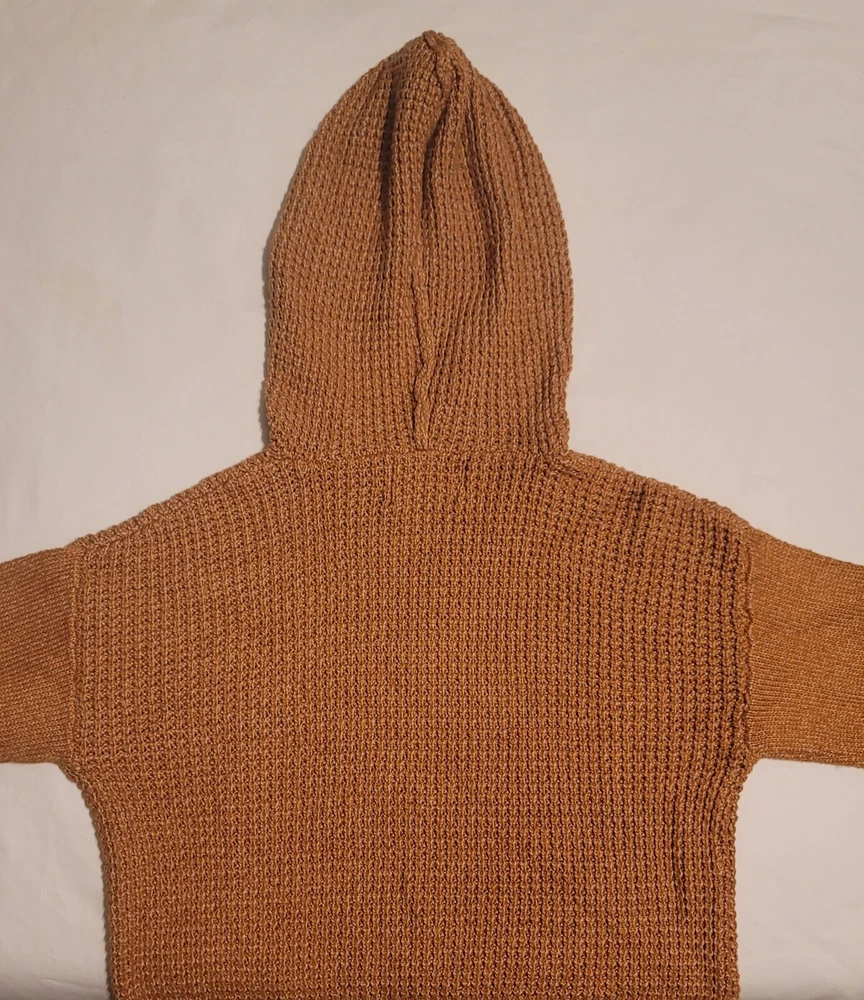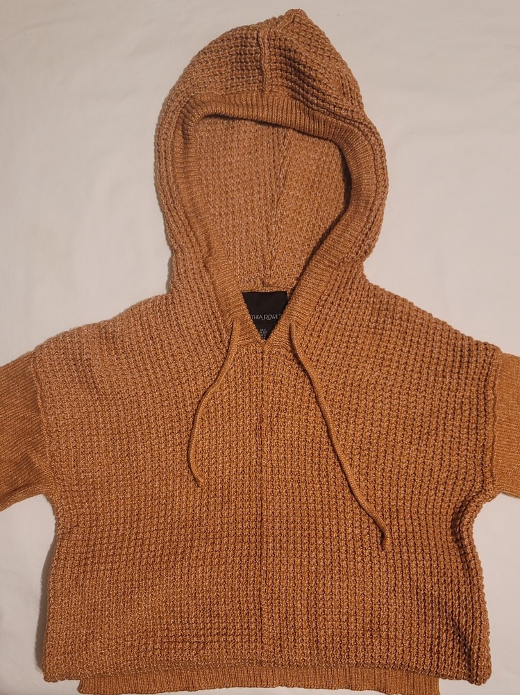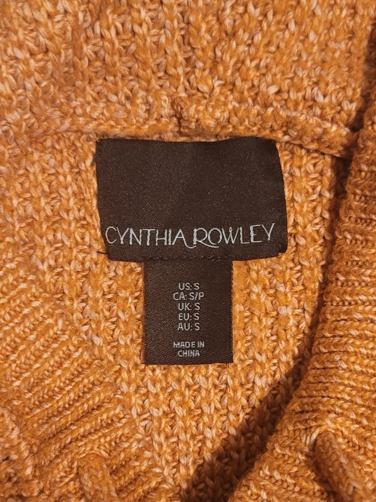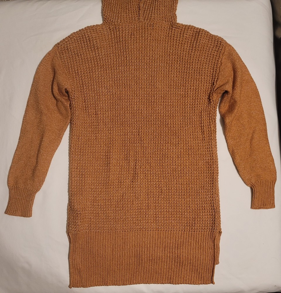This is a Cynthia Rowley Women's Hooded Sweater in gold color and size S. The sweater features a solid waffle knit pattern and a V-neckline. It is a casual pullover hoodie made of polyester, nylon, and rayon with a waffle-knit fabric type. The sweater is oversized, hooded, and has stretch and breathable features, making it suitable for all seasons. It is machine washable and has a classic theme. The sweater is a great addition to any wardrobe, providing cozy comfort and style.