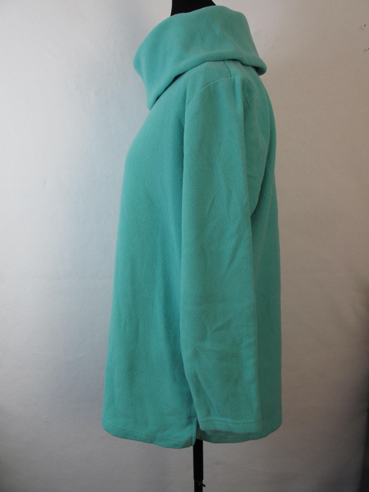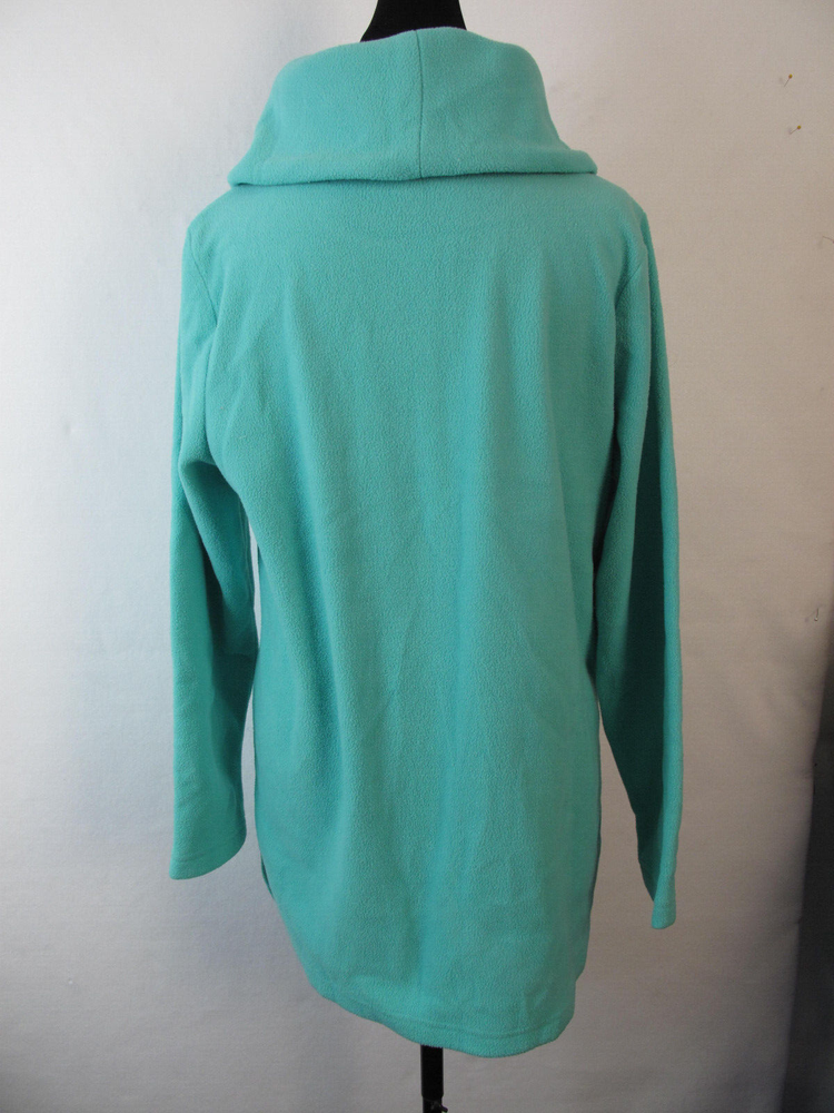 This D & Co. tunic top is perfect for any woman looking for a comfortable and stylish addition to her wardrobe. The fleece material is soft and cozy, making it a great choice for cooler weather. The cowl neckline and slits add a touch of elegance, while the stretchy material ensures a perfect fit for size M. This tunic top is a must-have for any woman who wants to feel comfortable and fashionable. Pit to Pit 23" Length 31" Sleeve 24"