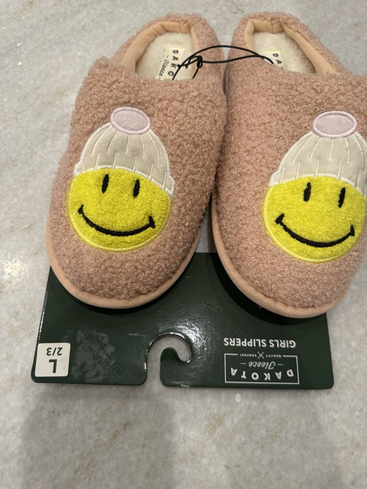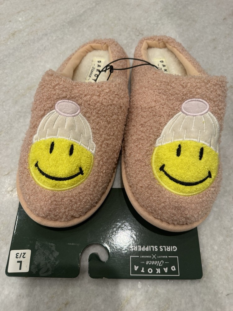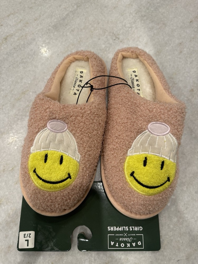 DAKOTA FLEECE Girl's Smiley Cozy Comfort Pink Slippers, Size: 2/3 L. Shipped with USPS Ground Advantage.