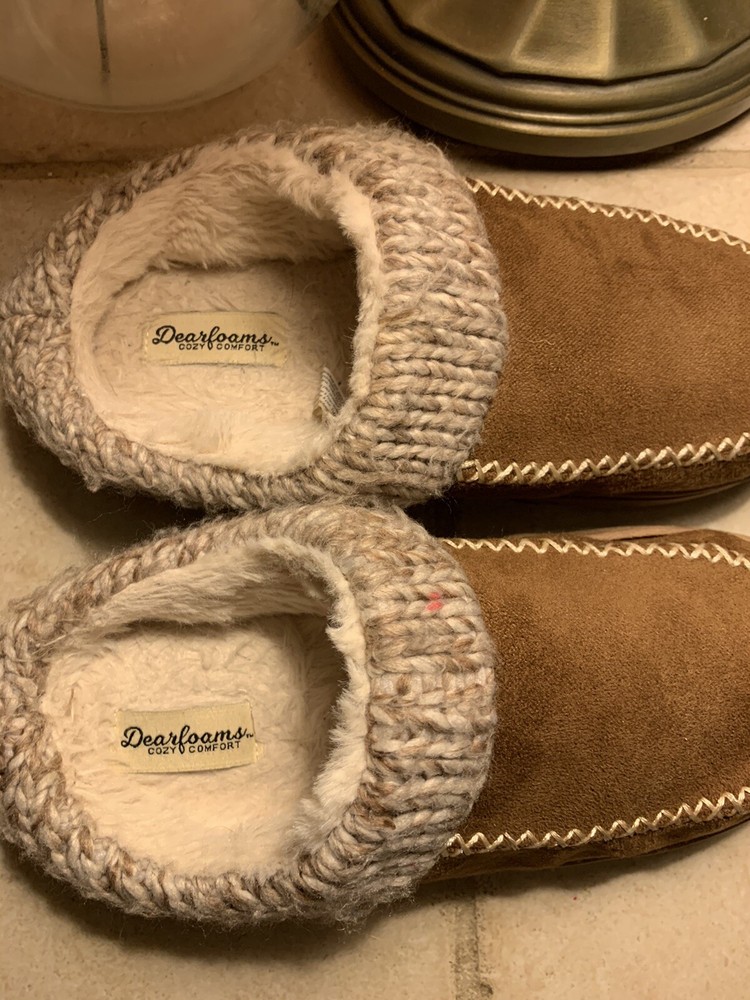 Experience ultimate comfort with these DEARFOAMS slip-on slippers. The slipper is made with faux suede upper material and faux fur lining material, providing a cozy and soft feel. The gel-infused memory foam insole material offers support and cushioning, making it perfect for everyday wear. These slippers come in a solid pattern with a round toe shape and a flat heel height. It is perfect for women who wear US shoe size 7-8 and comes in a stylish brown color. The slipper is a wide shoe width and has a slip-on closure. The DEARFOAMS slip-on slippers are perfect for those who want comfort and style in one product.