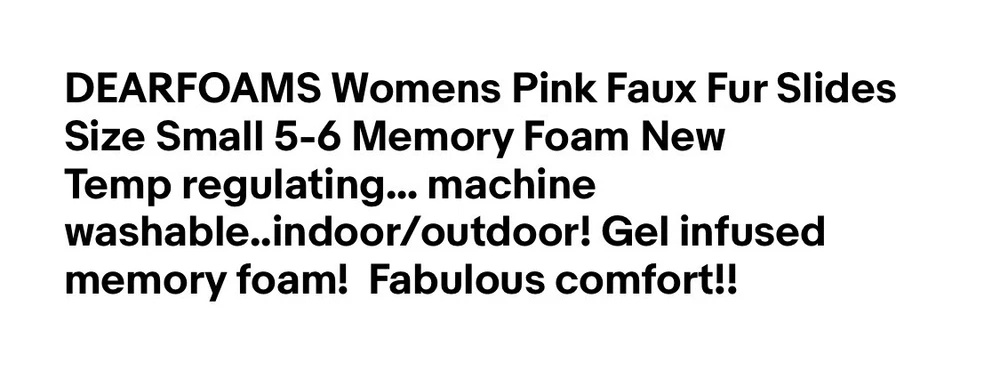 DEARFOAMS Womens Pink Faux Fur Slides Size Small 5-6 Memory Foam New Temp regulating… machine washable..indoor/outdoor! Gel infused memory foam! Fabulous comfort!!...