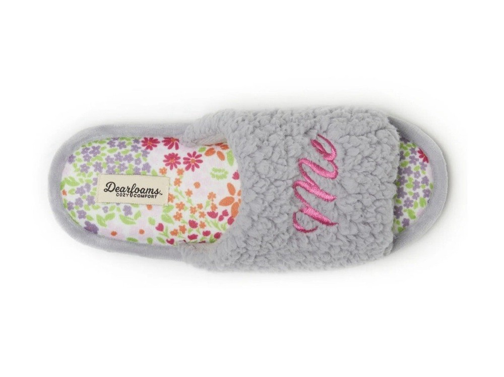 Dearfoams Cozy Comfort Women's Teddy Slogan Slide . Featuring a cozy combo of memory foam insoles and easy on/off designs, these machine washable slide slippers are a no-brainer when you're in need of some “Me Time”. • Machine washable: don't stress over spills; your slippers are sure to stay fresh for the long haul with convenient, easy-clean designs. • Easy on/off: comfort's just a step away thanks to the easy on/off designs of these clogs. • Slip-resistant: thanks to slip-resistant outsoles, this style is the perfect pick for relaxing around the house. • Memory foam: our superior comfort memory foam insoles cradle your feet with every step.