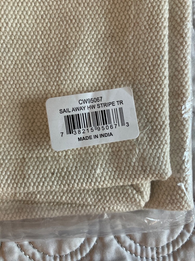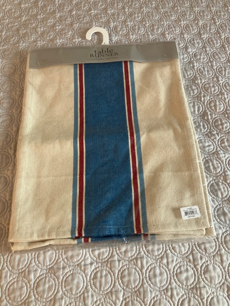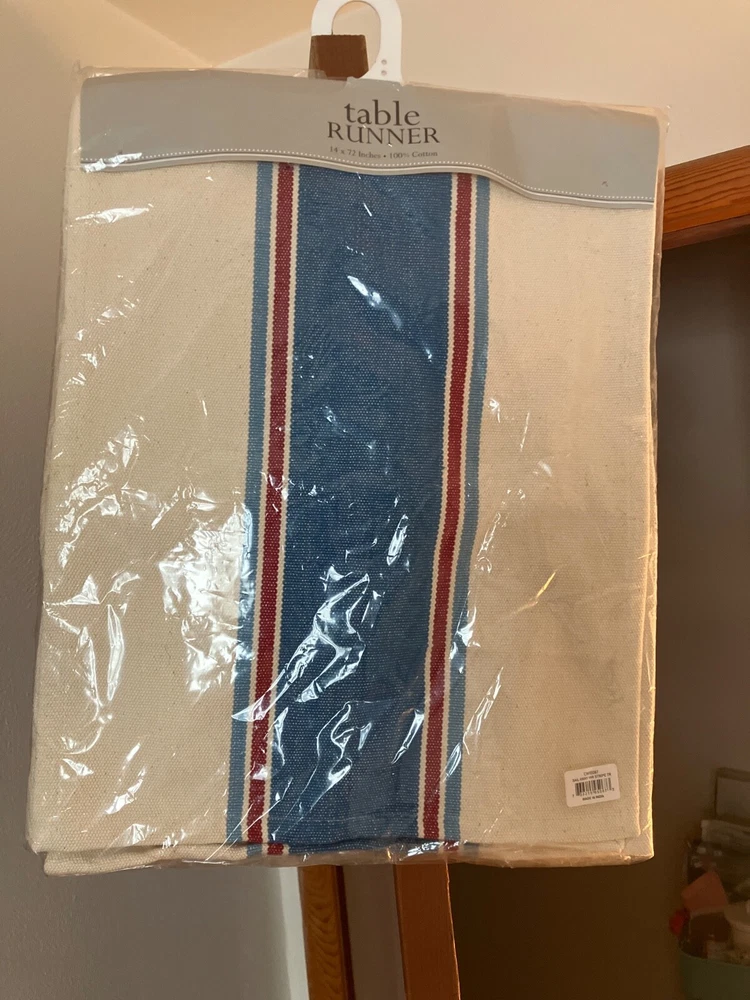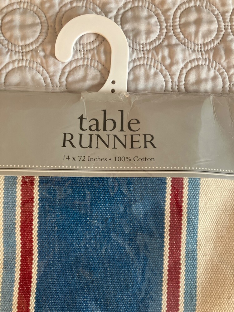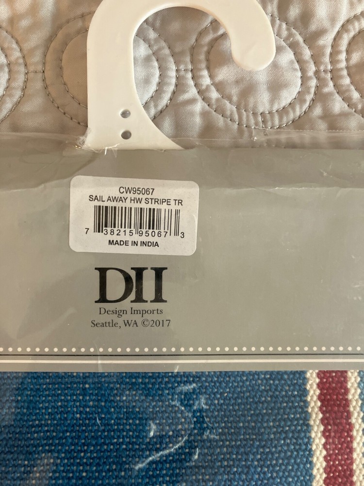 YOU ARE PURCHASING OR MAKING ME AN OFFER ON 1 DESIGN IMPORTS II TABLE RUNNER. THE SIZE IS 14 X 72 INCHES. THEME IS SAIL AWAY STRIPE. IT IS BRAND NEW IN ITS FACTORY SEALED PACKAGING. MINT CINDITION. I HAVE 2 AVAILABLE ON EBAY, AS OF THIS LISTING. PURCHASE WITH CONFIDENCE AS I HAVE BEEN WITH EBAY SINCE 1999 AND HAVE OVER 1,750 POSITIVE FEEDBACKS FROM MY SATISFIED EBAY CUSTOMERS. I ONLY SHIP TO THE UNITED STATES MAILING ADDRESSES. PLEASE VIEW MY OTHER EBAY ITEMS FOR MORE VINTAGE ITEMS, PLUS A LOT MORE. ALL OFFERS WILL BE CONSIDERED. ML