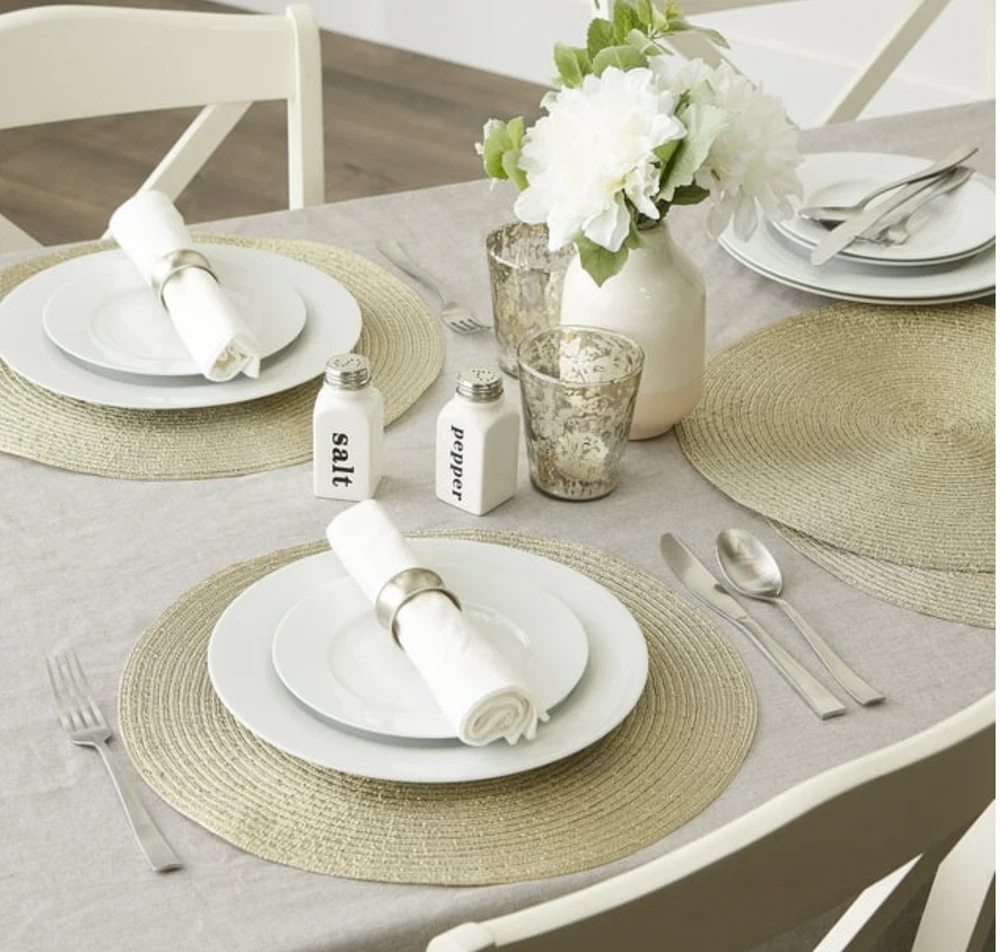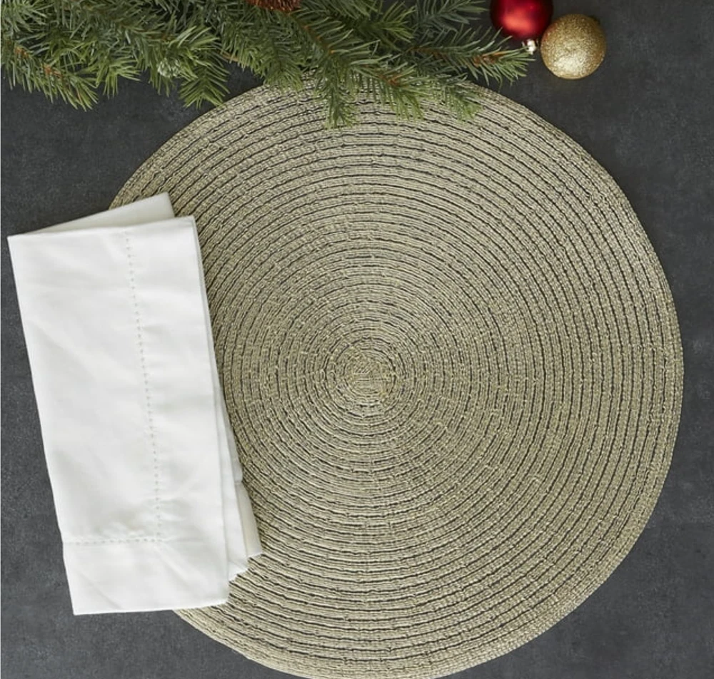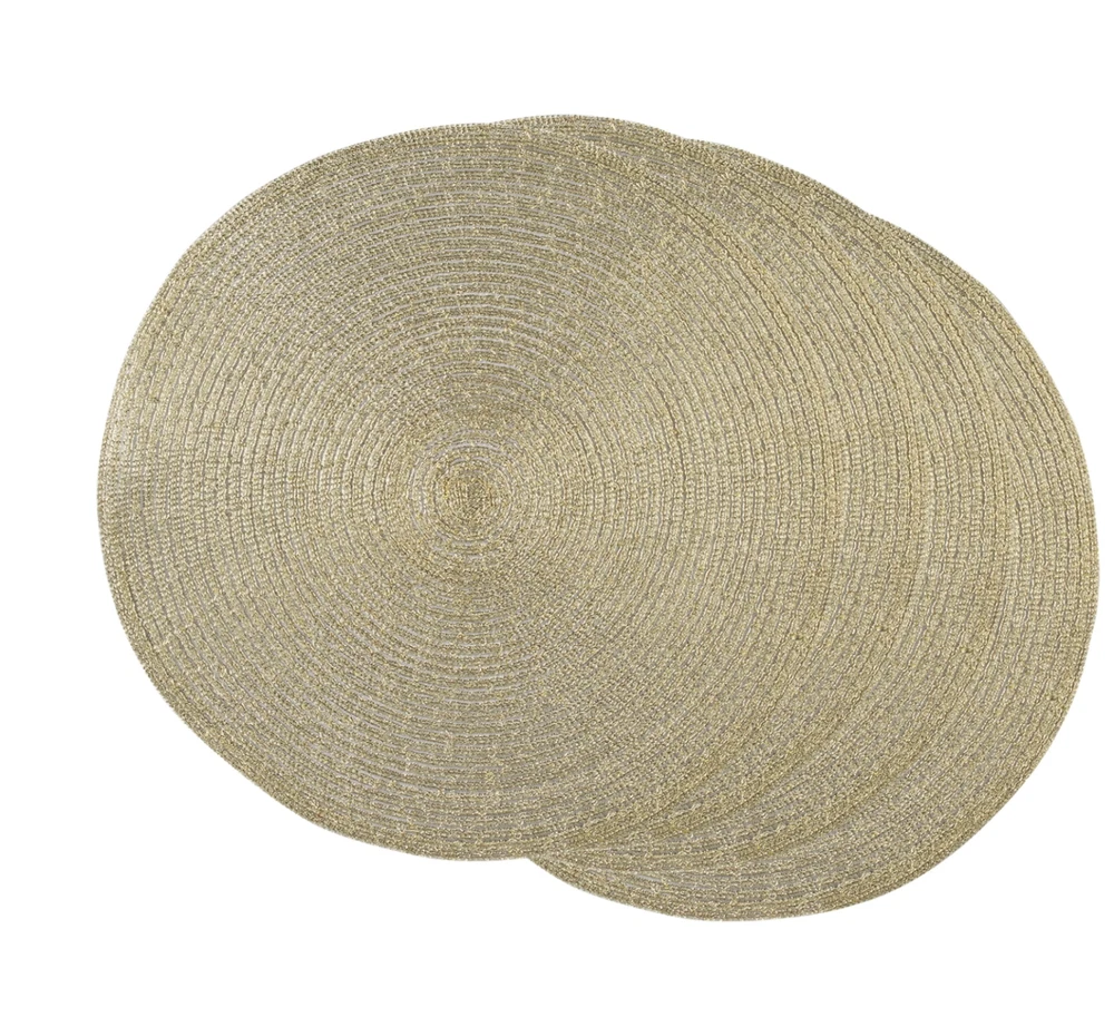RACCOON VISION WELCOMES YOU! 100% Money Back Guarantee! Brand New DESIGN IMPORTS 100% Polypropylene Woven Round Dinner Gold Mettalic Placemat - Set of 4, 15" Condition: Brand New These beautifully woven placemats are timeless and pair well with modern tableware as well as with more traditional tableware. Excellent for protecting your table from stains and scratches and extending the life of your table. Placemat measures - 15" x 15" x 0.25" Placemats makes the perfect complement to your table and is suited for outdoor dining as well Set of 4 - placemat Polyethylene Wipe clean All items are packaged carefully for shipping to prevent any damage during transportation. International Buyers - Please Note: Import duties, taxes, and charges are not included in the item price or shipping cost. These charges are the buyer's responsibility. Please check with your country's customs office to determine what these additional costs will be prior to bidding or buying. If you have any questions please feel free to ask. Thank you for choosing us! Item ID: RVM 10T_767