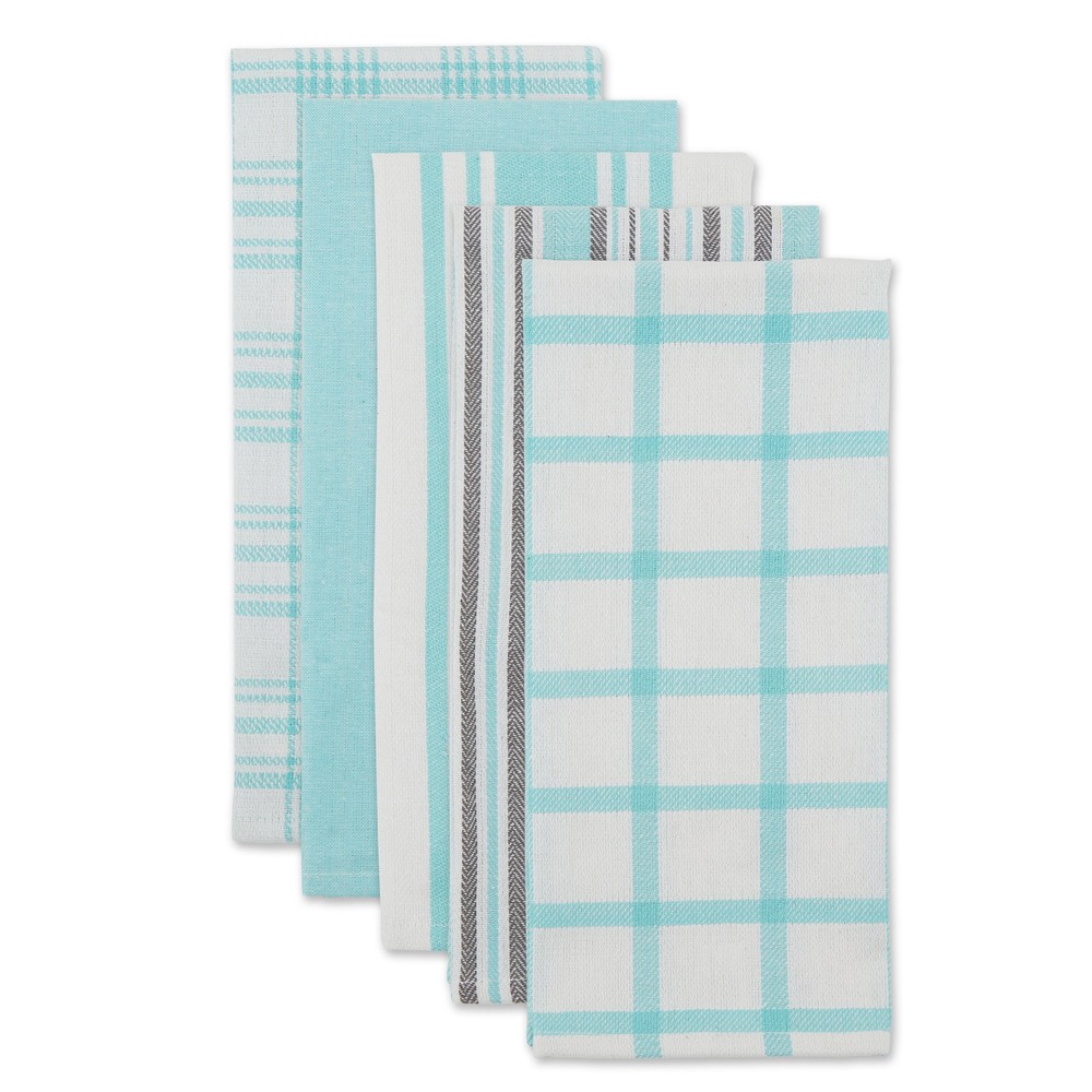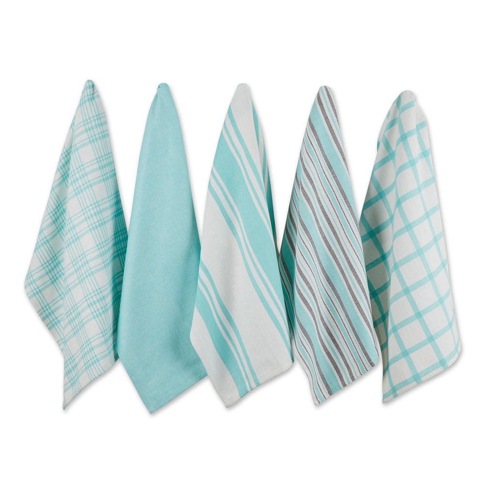 DII Asst Aqua Woven Dishtowels (Set of 5) Made in India these oversized dishtowels measures 18 x 28 inches to tackle all of your drying and cleaning kitchen tasks. Tightly woven 100 percent Cotton wash with cold water on gentle cycle tumble dry low tumble dry low and low iron if needed. wash separately on first use to minimize lint. These towels are lightweight absorbent and dry quickly with a corner loop for hanging. Classic assorted designs with multiple color options to match with your kitchen decor. perfect to give as Mother's Day housewarming and hostess gifts. DII offers delightful Kitchen Linens including dishtowels aprons potholders and oven mitts. Brand Design Imports DII Asst Aqua Woven Dishtowels Set of 5 Model NO CAMZ13662