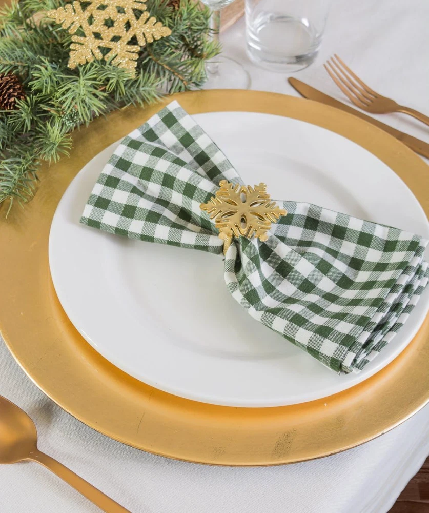 RACCOON VISION WELCOMES YOU! 100% Money Back Guarantee! Brand New Design Imports Gold Snowflake Napkin Ring Set of 6 - Brand New SET OF 6. BRAND NEW Large variety of napkin rings allows you to transform your table for any season or occasion. Perfect for holidays, dinners, christmas, new years, thanksgiving, 4th of July, memorial day, labor day, picnics, parties, weddings, etc. Sturdy, mid-weight napkin ring. Set of 6 napkin rings 2.5" dia Metal etched ring, lacquered gold Finish Can be dressed up or down to create the perfect look for each place setting and your table Wipe With Damp Cloth CONDITION: Brand New All items are packaged carefully for shipping to prevent any damage during transportation. International Buyers - Please Note: Import duties, taxes, and charges are not included in the item price or shipping cost. These charges are the buyer's responsibility. Please check with your country's customs office to determine what these additional costs will be prior to bidding or buying. If you have any questions please feel free to ask. Thank you for choosing us! Item ID: RVM 10T_803