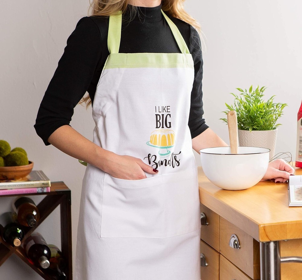 DII Design Imports Big Bundts Apron ONE SIZE FITS MOST: The apron measure 28 x 33", with extra-long strap to warp around neck and waist. EASY CARE LONG-LASTING MATERIAL: 100% Cotton Fabric, Machine Washable. Wash with Cold Water in Gentle Cycle & Tumble Dry Low. Do not bleach them or run them through a hot dryer COMES WITH HUGE POCKET: Perfect to put cooking gadget and coordinate with your kitchen for baking, cooking, serving, crafting and more. FUN AND TRENDY AS PERFECT GIFT ON ANY OCCASIONS: The artistic print makes these aprons great gifts for Christmas, Mother's Day, Holidays, Birthdays and more. Condition: Brand New with tag s **Stock Images** Stock photos have been used in this listing. The packaging and/or item you will receive may vary slightly but is guaranteed to be the same model and in the same condition as described.