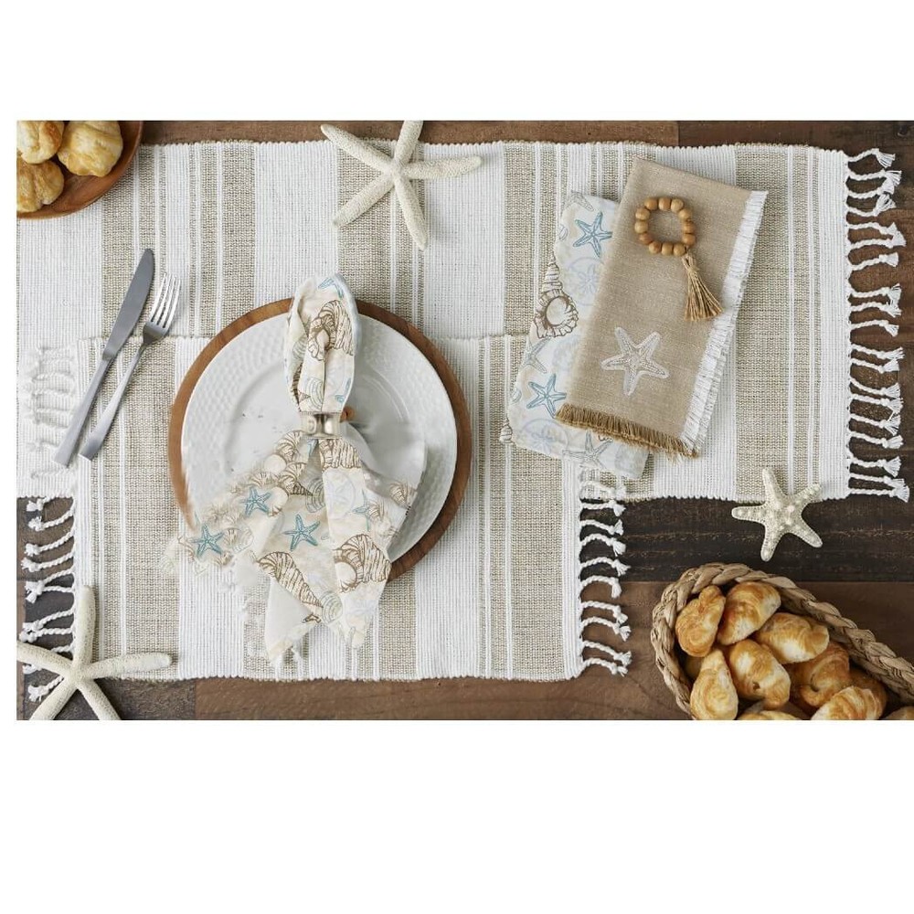DII Design Imports Beach Comber Printed Napkins, Set of 6 DII Design Imports Beach Comber Printed Napkins, Set of 6 Add a touch of beach beauty to your tablescape with DII's Beach Comber napkins. Featuring ornate shells and sealife on a neutral sandstone background, these napkins are perfect for summer dining indoors or outdoors. Details Set of 6 napkins Dimensions: 20" x 20" Color: Sandstone, blue, brown Care Instructions: Machine wash, Tumble dry Low iron, if needed Wash separately before use Made in India SHIPPING & RETURNS: Orders ship in 1 business day; we do not ship on weekends. Domestic orders ship free! We offer free returns for 60 days from delivery on domestic orders. All International orders ship by weight and box dimensions. We offer eBay International Shipping. About Us : We are a business, and our items are new and in stock directly from the manufacturer. All photos are from the manufacturers. There is a full guarantee on all our items, with free returns if you are not pleased for any reason.