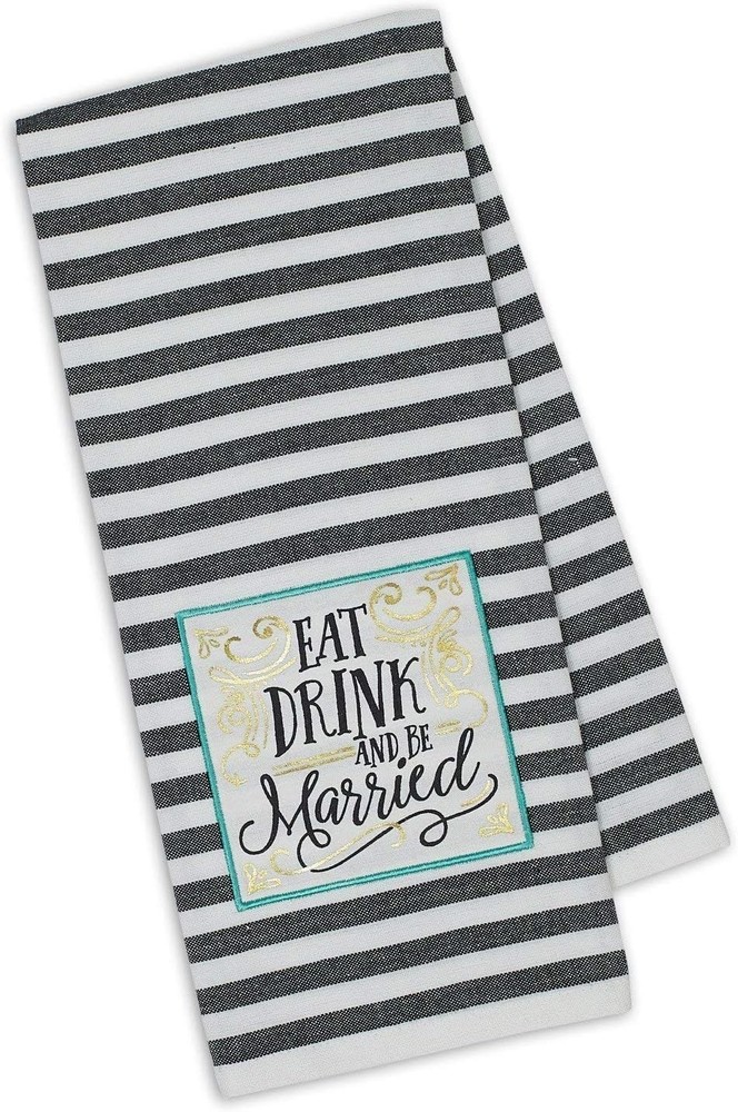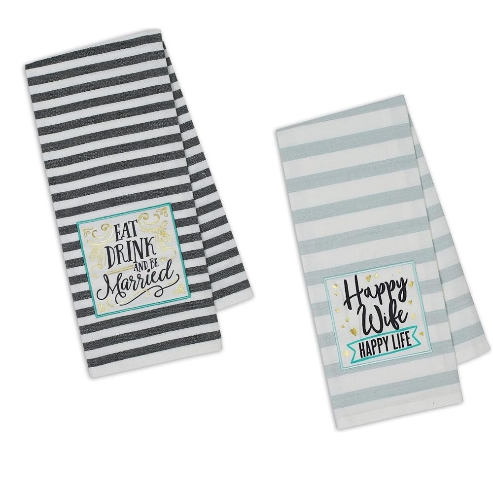 High quality set of 2 wedding theme kitchen towels. These are a great wedding or bridal shower gift. 100 % cotton These large dishtowels measure 18 inches wide by 26 inches long and each includes fabric loop for easy hanging to display or keep handy. Fun Bridal shower or wedding gift