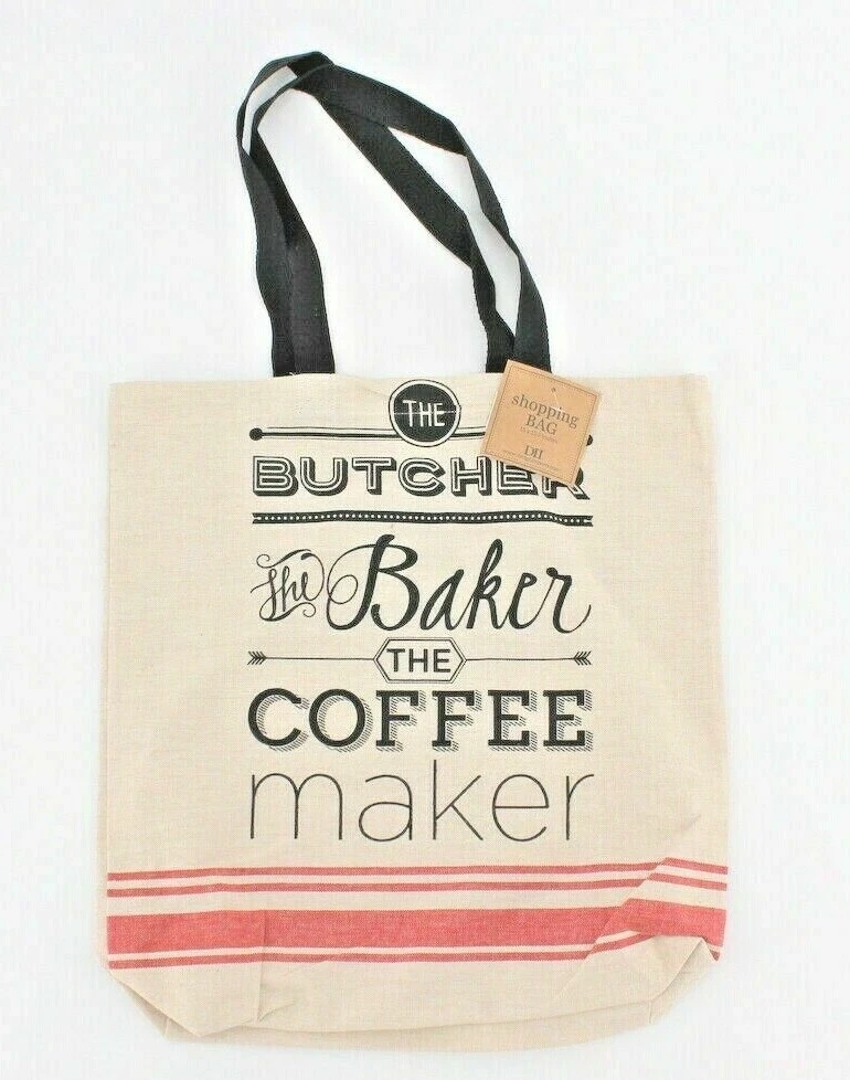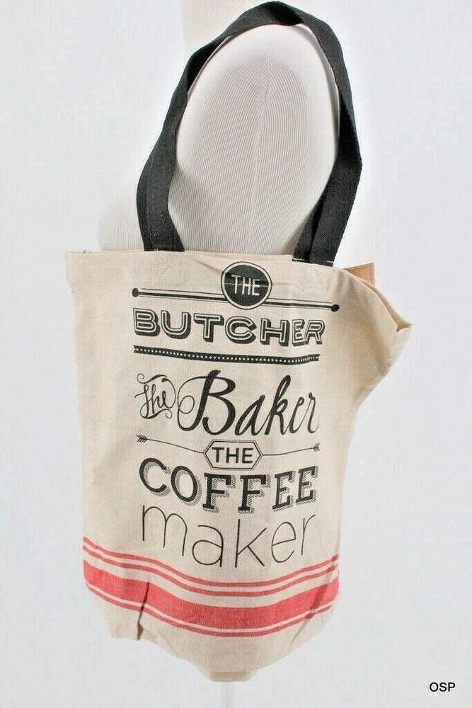 DII Design Imports The Butcher The Baker The Coffee Maker Reusable Grocery Shopping Bag Cotton Market Tote. 15" x 15" Brand New With Tags