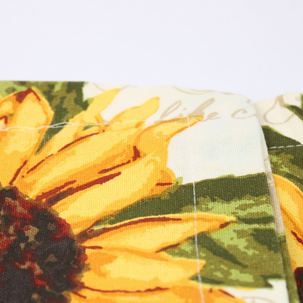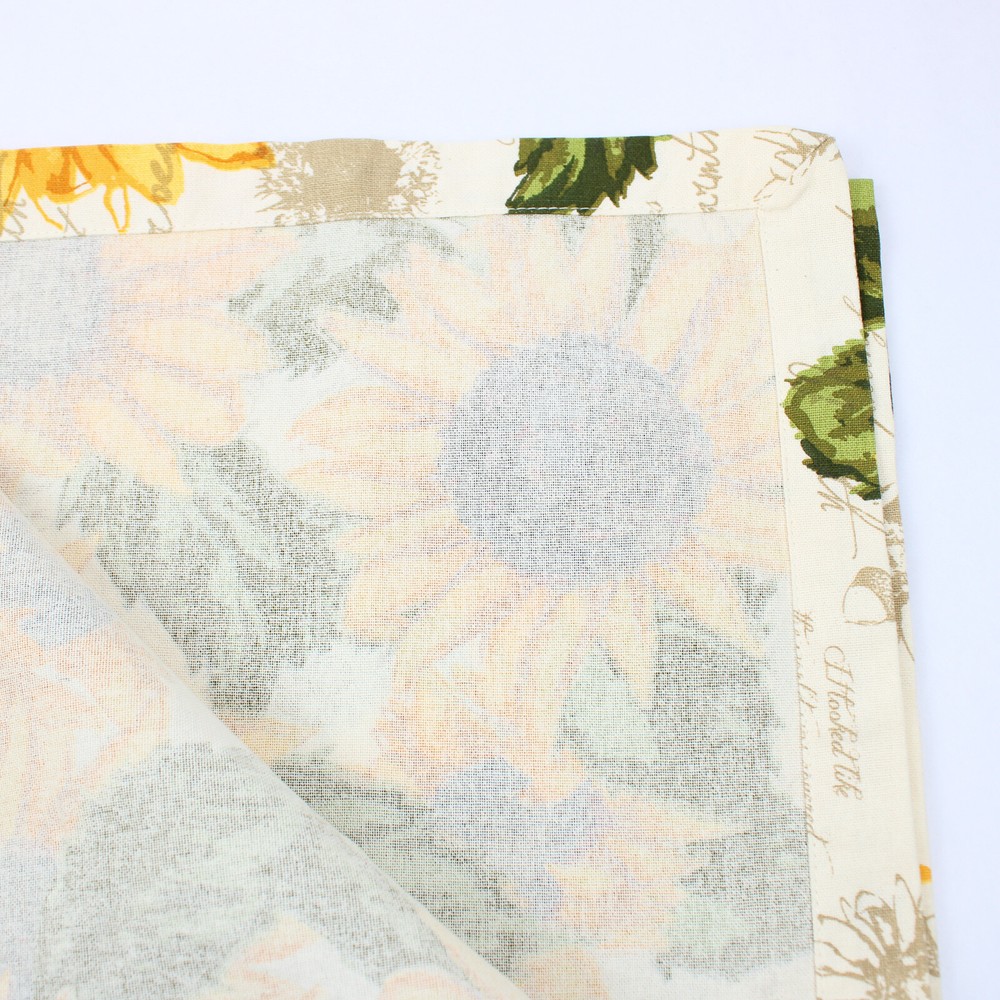 Add a touch of rustic charm to your dining experience with this DII Design Imports sunflower tablecloth. Measuring 50" x 51", it is perfect for fall and Thanksgiving gatherings. This item is in good pre-owned condition, showcasing a beautiful sunflower design. It’s easy to handle and style with your décor.